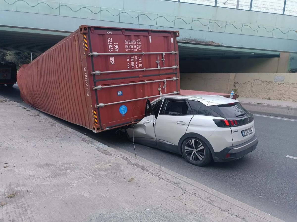 Bakırköy Rauf Orbay Caddesi'nde ilerleyen TIR'ın üst geçide çarpması nedeniyle dorsesi Anadolu Efes'te oynayan ABD'li basketbolcu Bryant Dunston'ın kullandığı aracın üzerine devrildi.