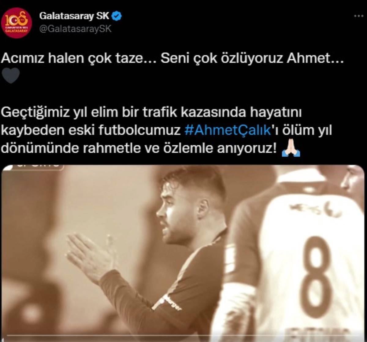 "Bu kadar geçen zamanın sonunda Ahmet'in acısı yüreğimizde, gönlümüzde hep ilk günkü gibi duruyor. Elbette hayat devam ediyor. Çalışıyoruz, maçlara çıkıyoruz. Yeri geldiği zaman seviniyoruz ama bir gün bile onu unutmuyoruz. İnsan hafızası unutmaya programlı, böyle yaratılmışız ama biz Ahmet'i asla unutmayacağız. Tesiste, stadyumun her köşesinde ona ait hatıralarımız var. Yüreği yanan anne, babasına ve tüm sevenlerine sabır diliyorum. Mekanı cennet olsun Ahmet kardeşimin."