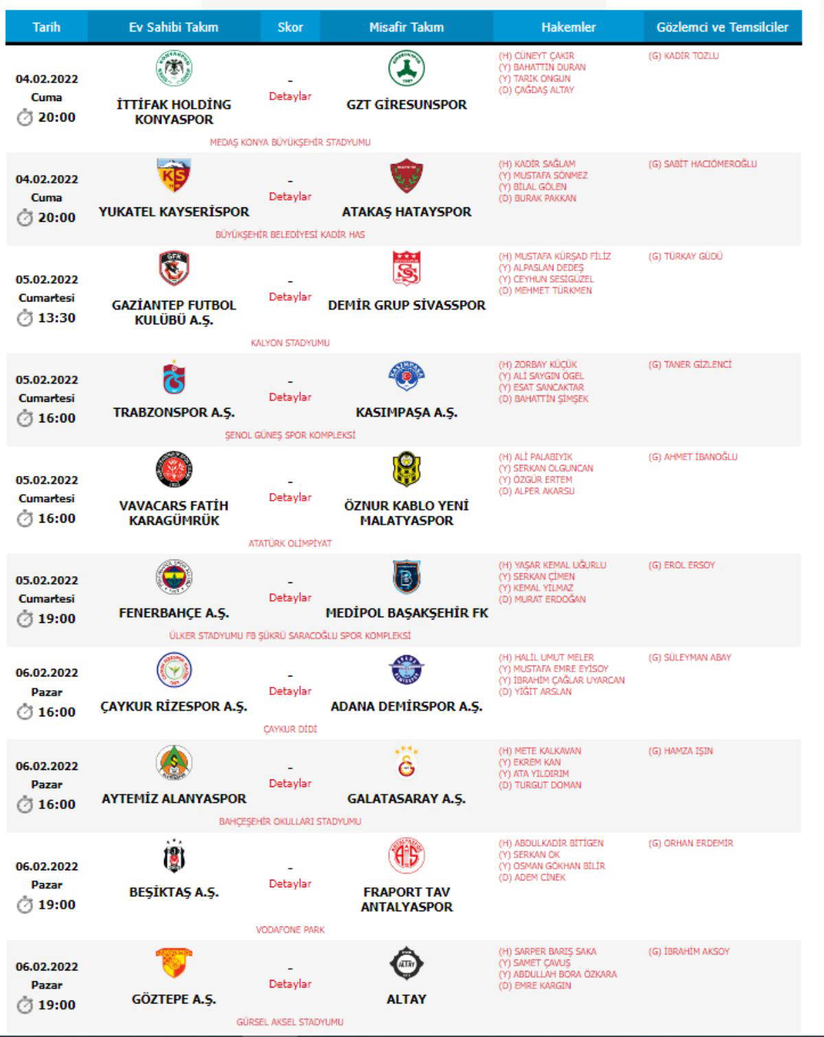 Spor Toto Süper Lig, verilen 1 haftalık aranın ardından 24. hafta maçlarıyla devam ediyor. Ahmet Çalık Sezonu'nda 24. hafta maçlarında düdük çalacak hakemler ve haftanın programı belli oldu.