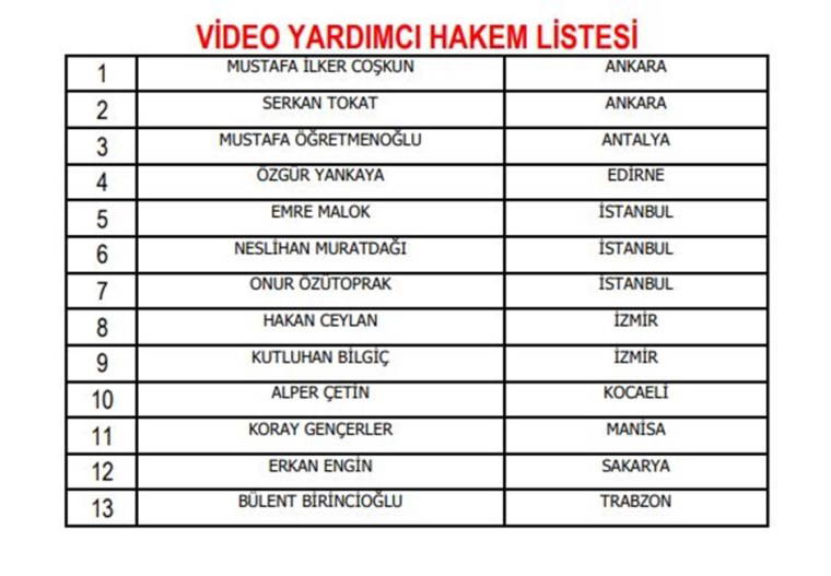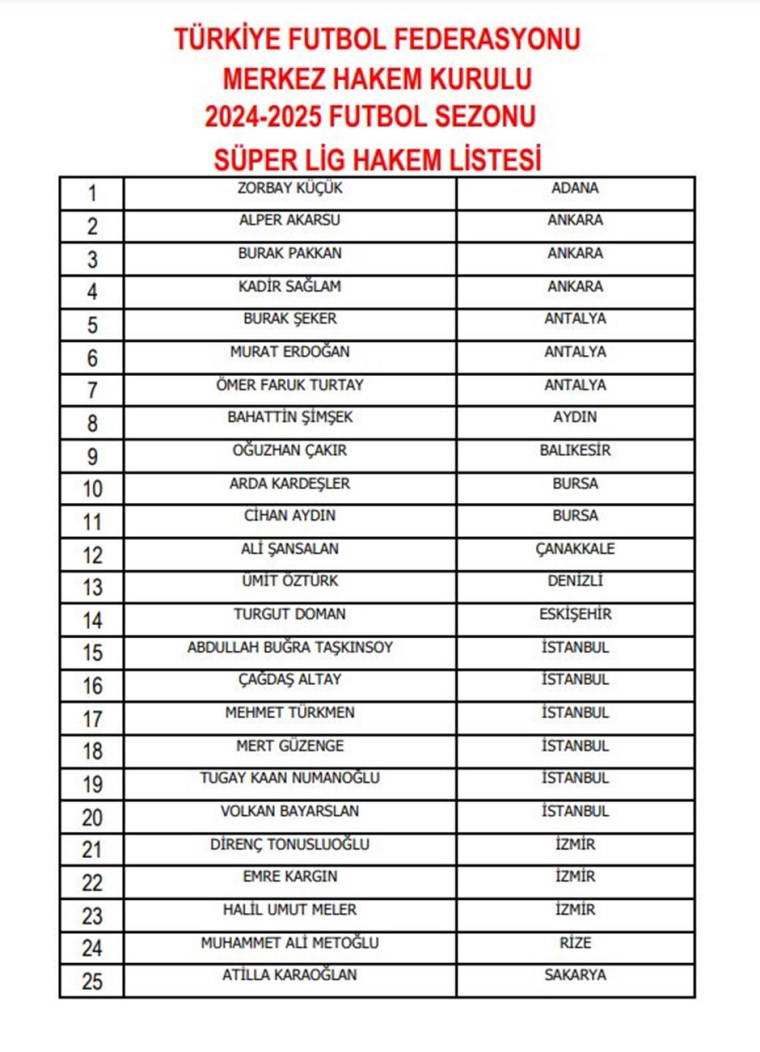 TFF'den yapılan açıklamaya göre bu sezon Süper Lig'de görev yapacak hakemler şöyle: