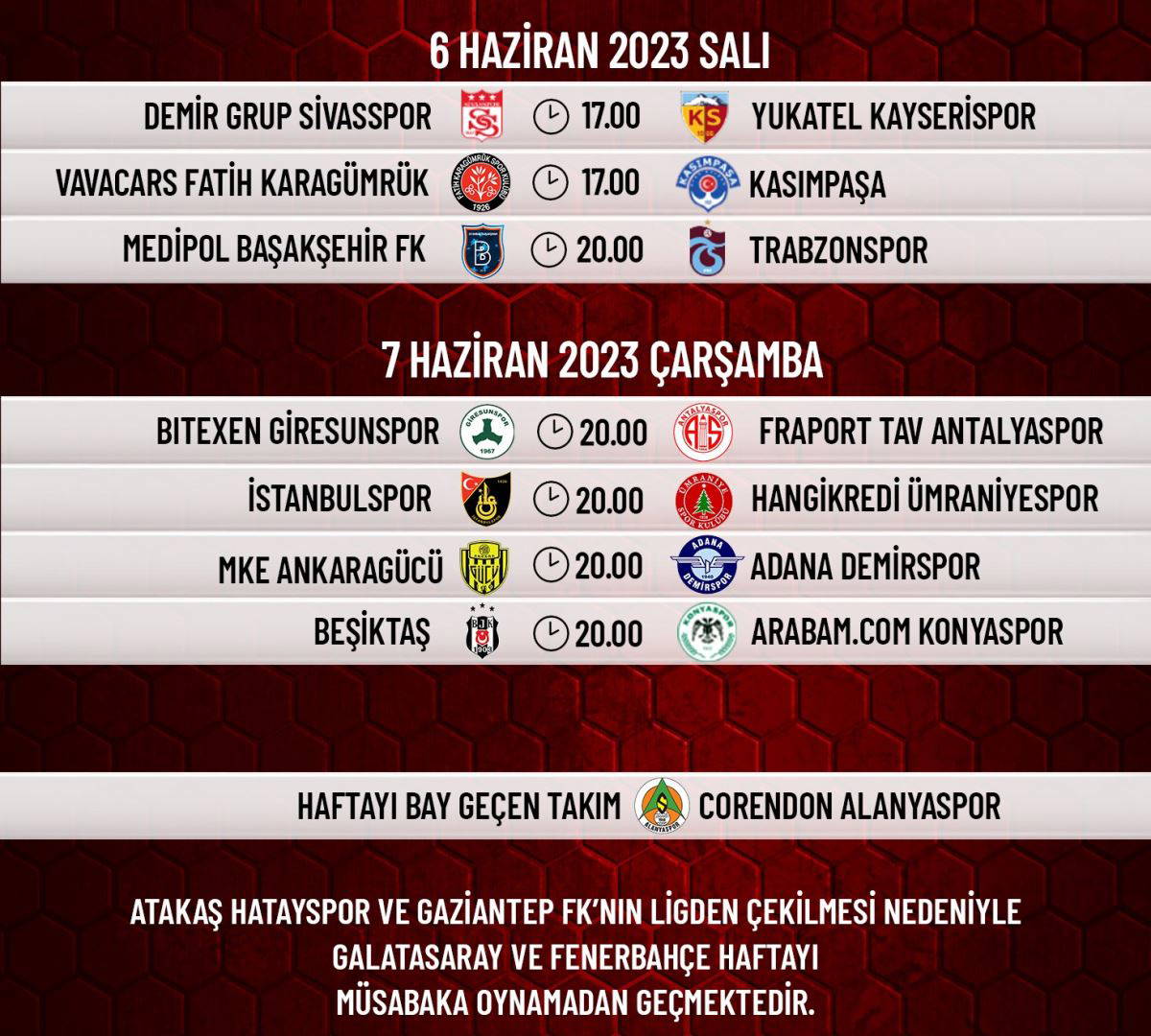 Galatasaray ve Fenerbahçe'nin hükmen galibiyetlerle geçeceği, Alanyaspor'un ise 'BAY' olduğu son haftanın programı şu şekilde: