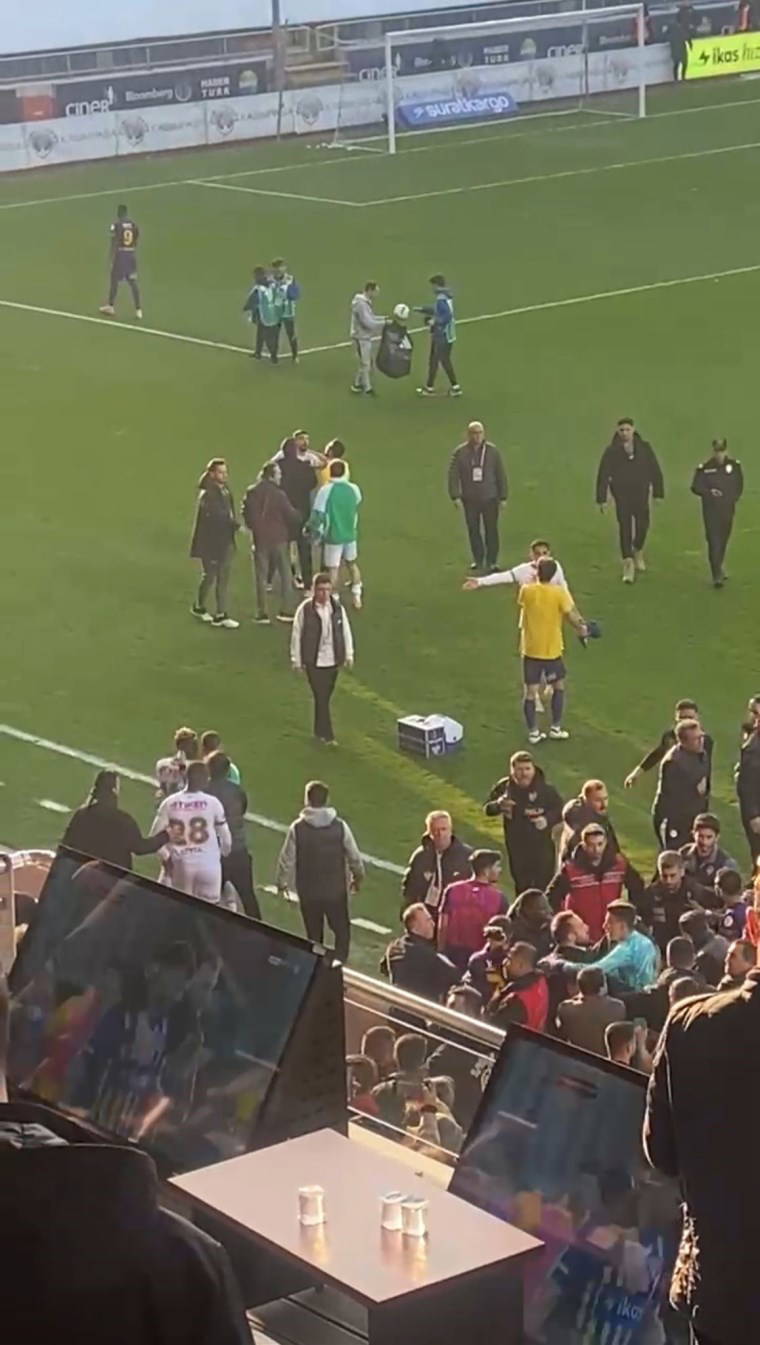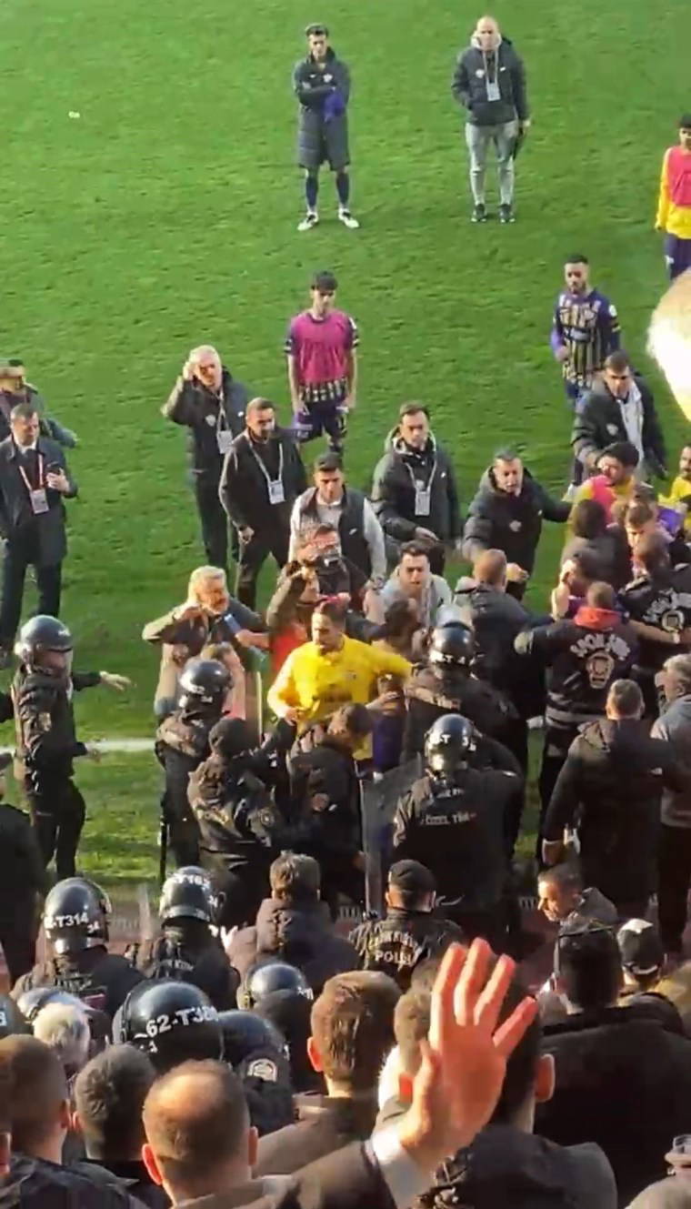 Kavga uzun süre devam ederken, taraftarları sakinleştirmekte zorluk yaşandı.