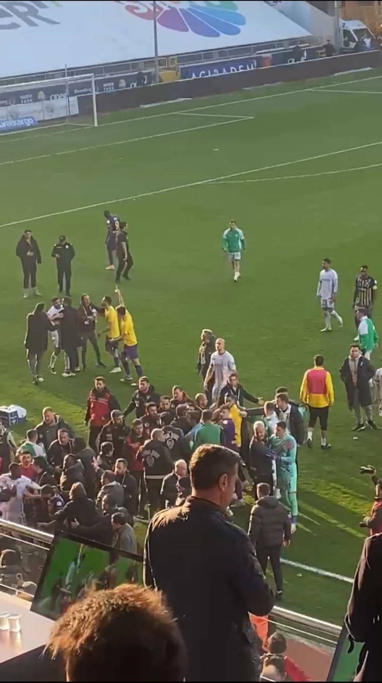 Sahada Kramer ile Robin Yalçın arasında başlayan tartışmalar bir anda büyüdü ve iki takım oyuncuları arasında arbede yaşandı.