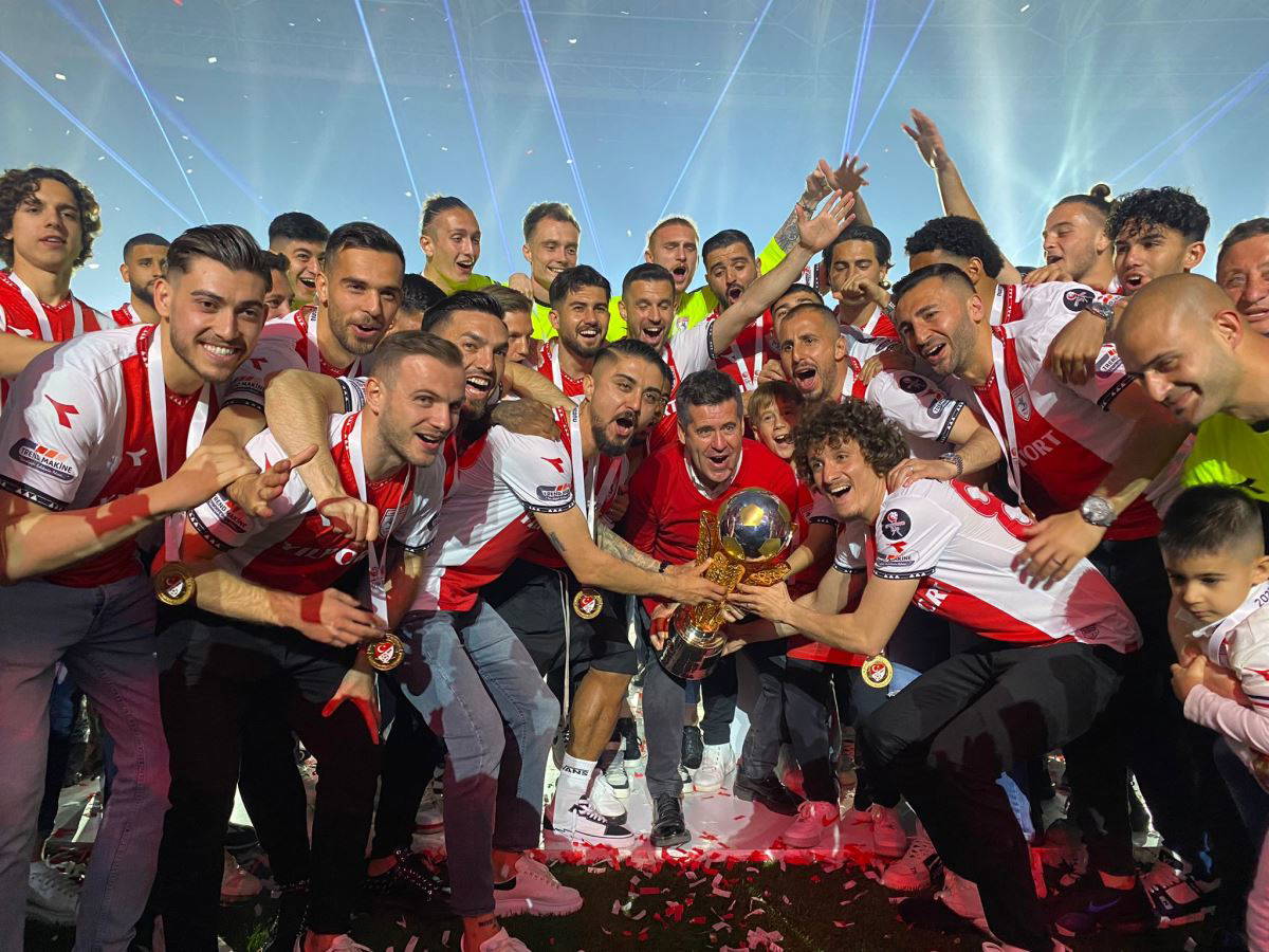 Kırmızı-beyazlı futbolcular, daha sonra takım halinde kupayı kaldırarak büyük sevinç yaşadı. Futbolcular töreninin ardından kupayla tribündeki taraftarları selamladı.