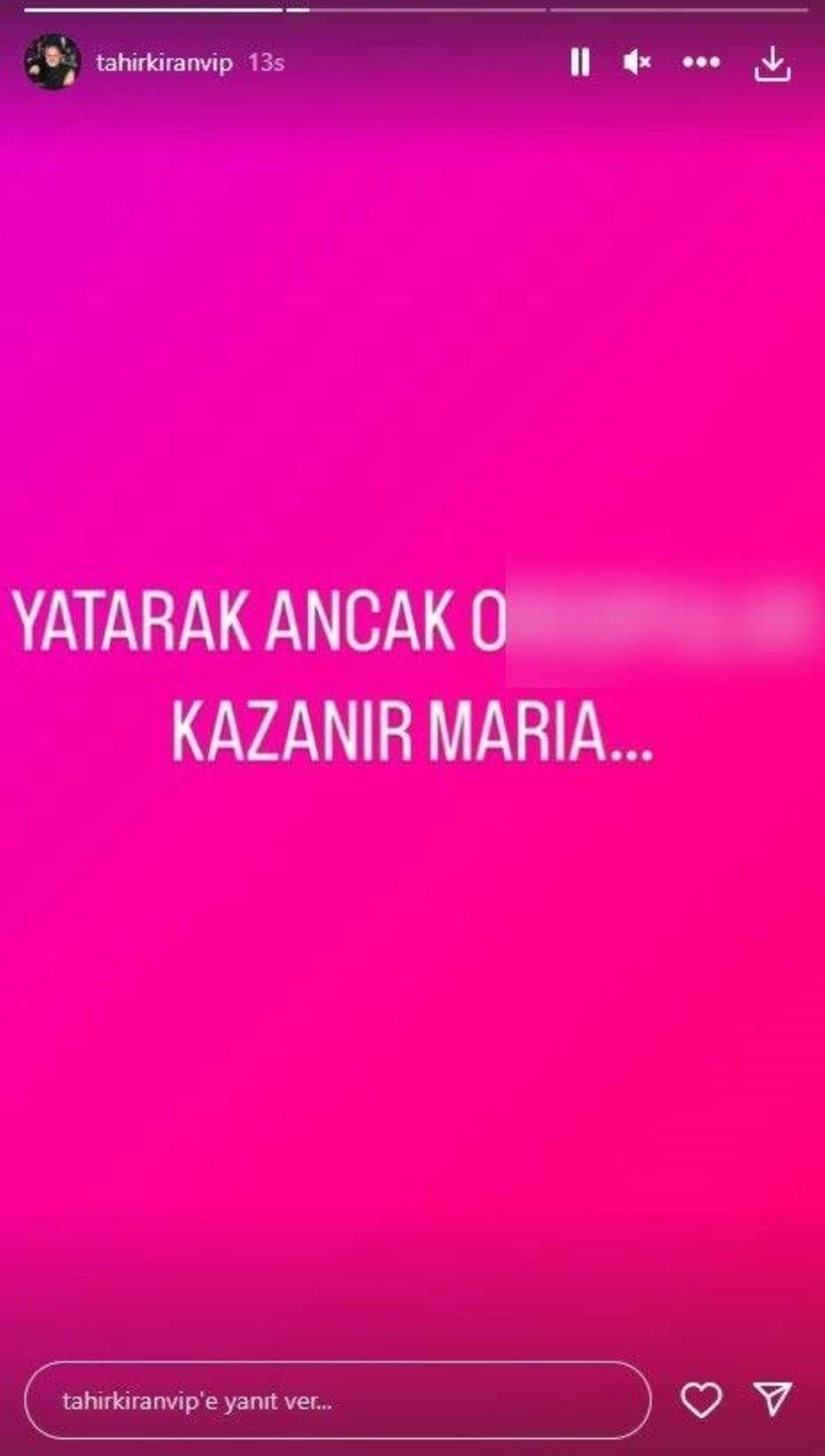 Kıran daha sonra, "Yatarak ancak o.... kazanır Maria..." ifadelerinin yer aldığı bir paylaşım yaptı.