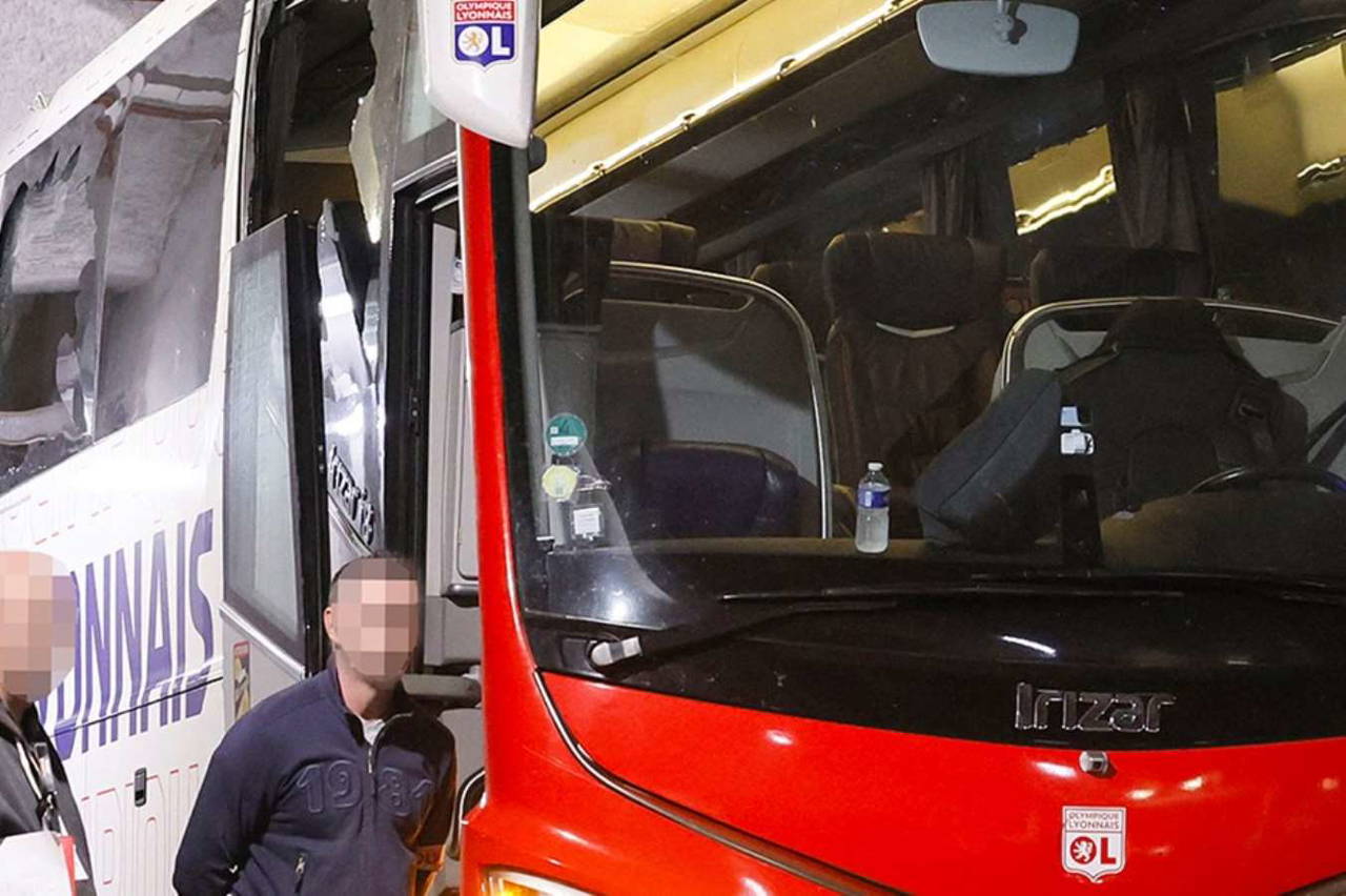 Saldırıda otobüsün camları kırılırken, Olimpik Lyon Teknik Direktörü Fabio Grosso ile yardımcısı Raffaele Longo'nun yaralandığı görüntüler sosyal medya hesaplarında paylaşıldı.