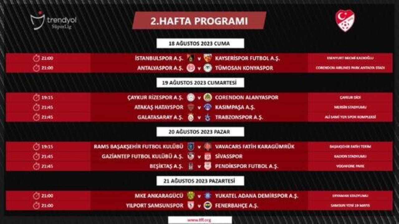 Türkiye Futbol Federasyonu, Trendyol Süper Lig'de ilk 2 haftanın programını açıkladı.