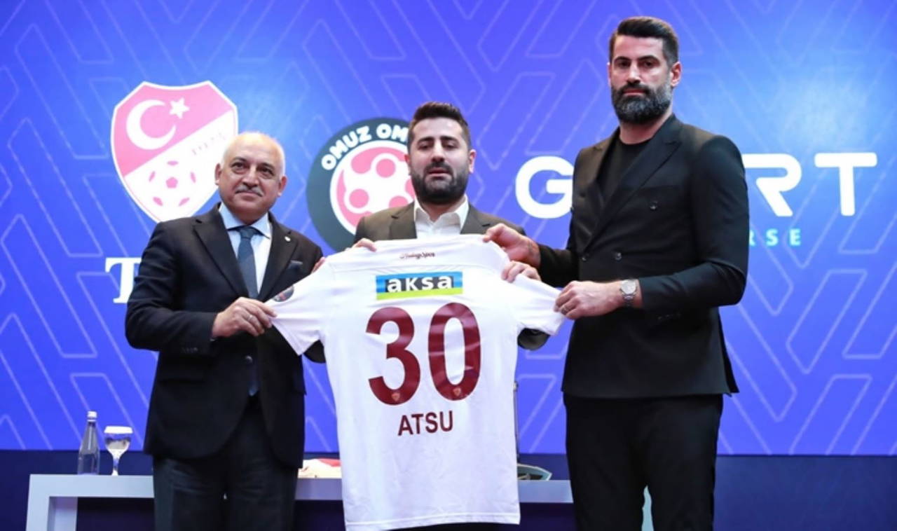 Volkan Demirel, depremde hayatını kaybeden Ganalı oyuncu Christian Atsu'nun isminin yer aldığı, Atakaş Hatayspor oyuncularının imzalarının bulunduğu takım formasını Mehmet Büyükekşi'ye hediye etti.