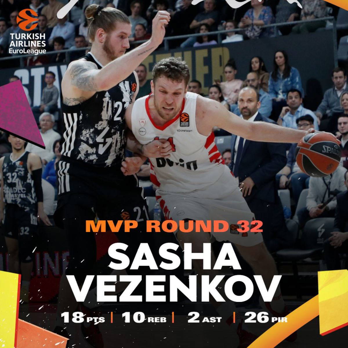 Organizasyonun internet sitesinden yapılan açıklamaya göre 32. hafta karşılaşmalarında 26 verimlilik puanına ulaşan Sasha Vezenkov, haftanın MVP'si oldu.