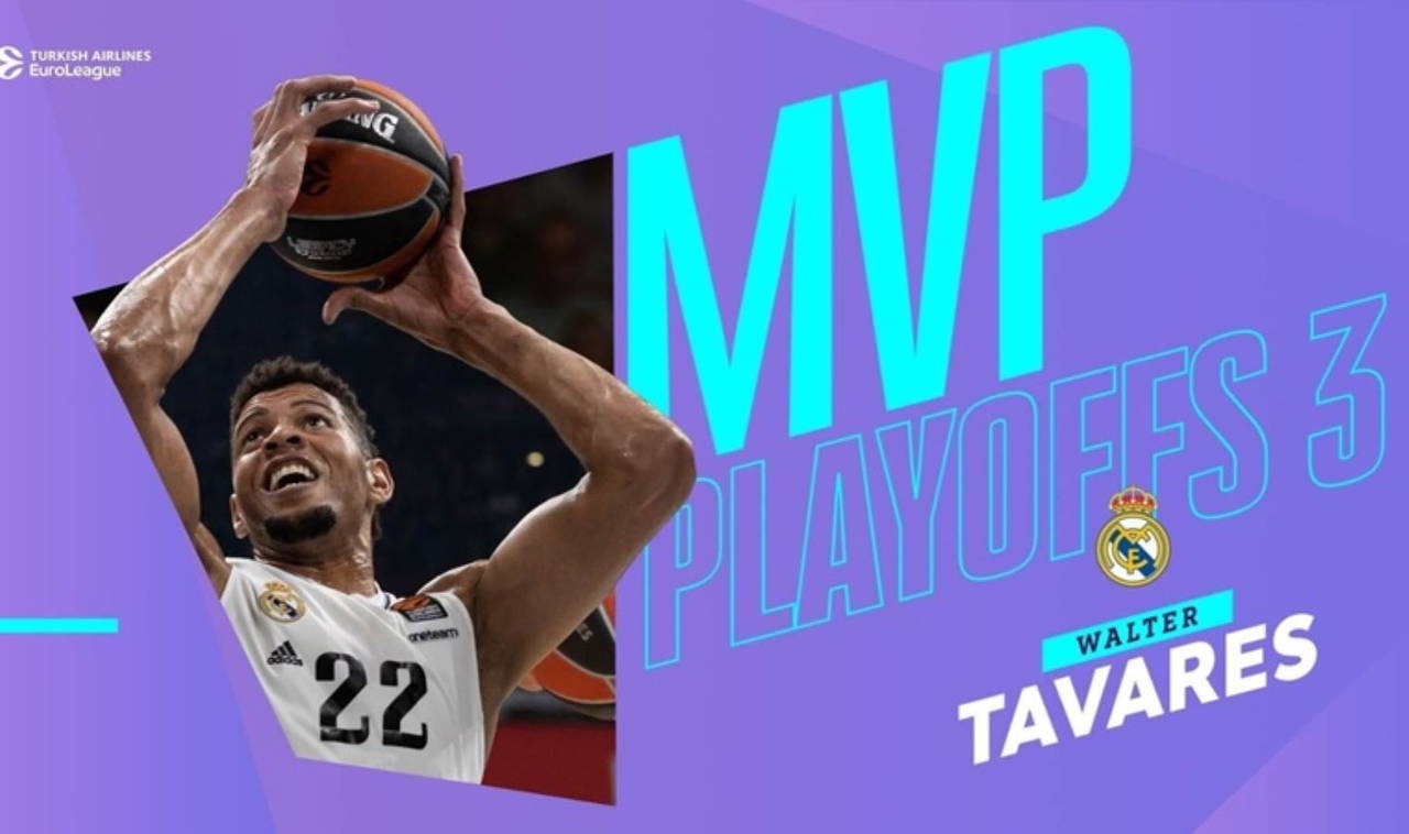 İspanyol kulüp Real Madrid'in formasını giyen Walter Tavares, EuroLeague'in play-off turu üçüncü haftasında MVP seçildi.