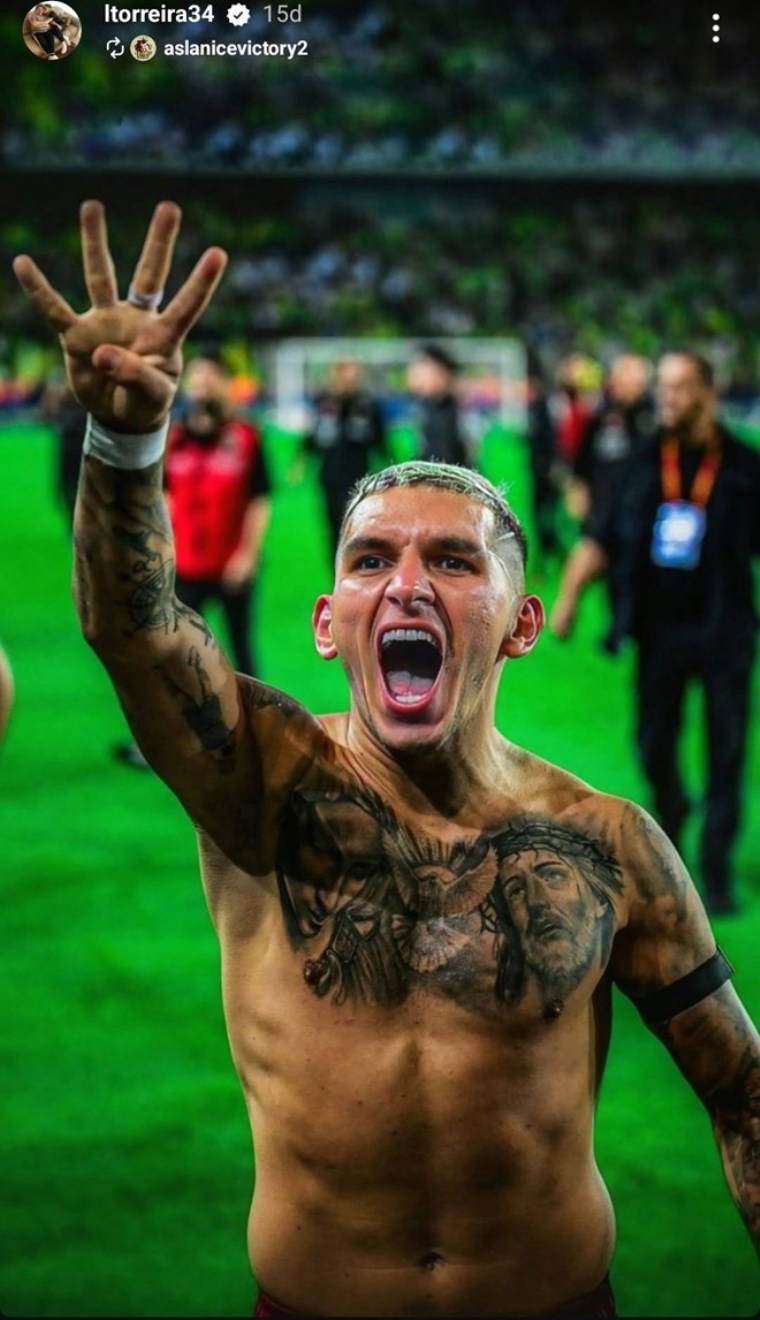 Lucas Torreira, Kadıköy'de 3-1 kazanılan maçın ardından yaşadıkları sevinci ve sarı kırmızılıların sahip olduğu yıldız sayısı eliyle işaret ettiği bir fotoğraf paylaştı.