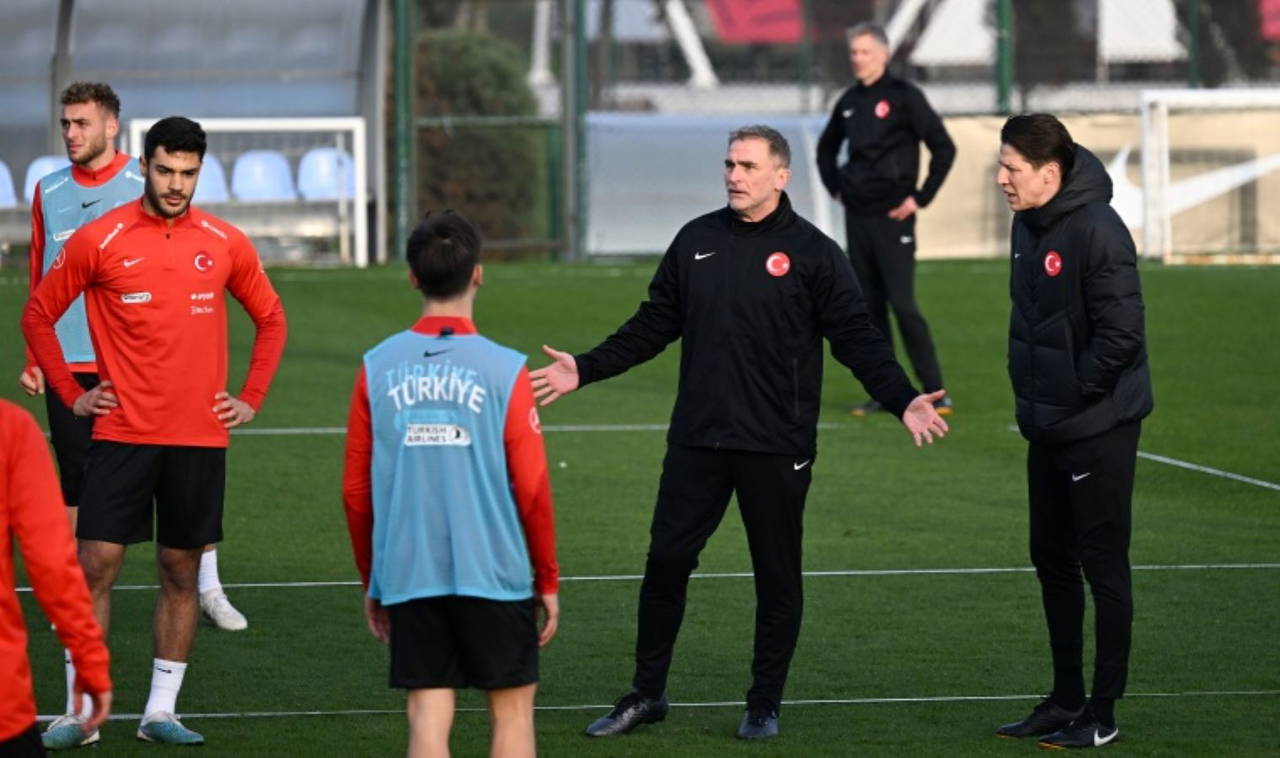 A Milli Takım Teknik Direktörü Stefan Kuntz, antrenmanı sık sık durdurarak oyuncuları uyardı.