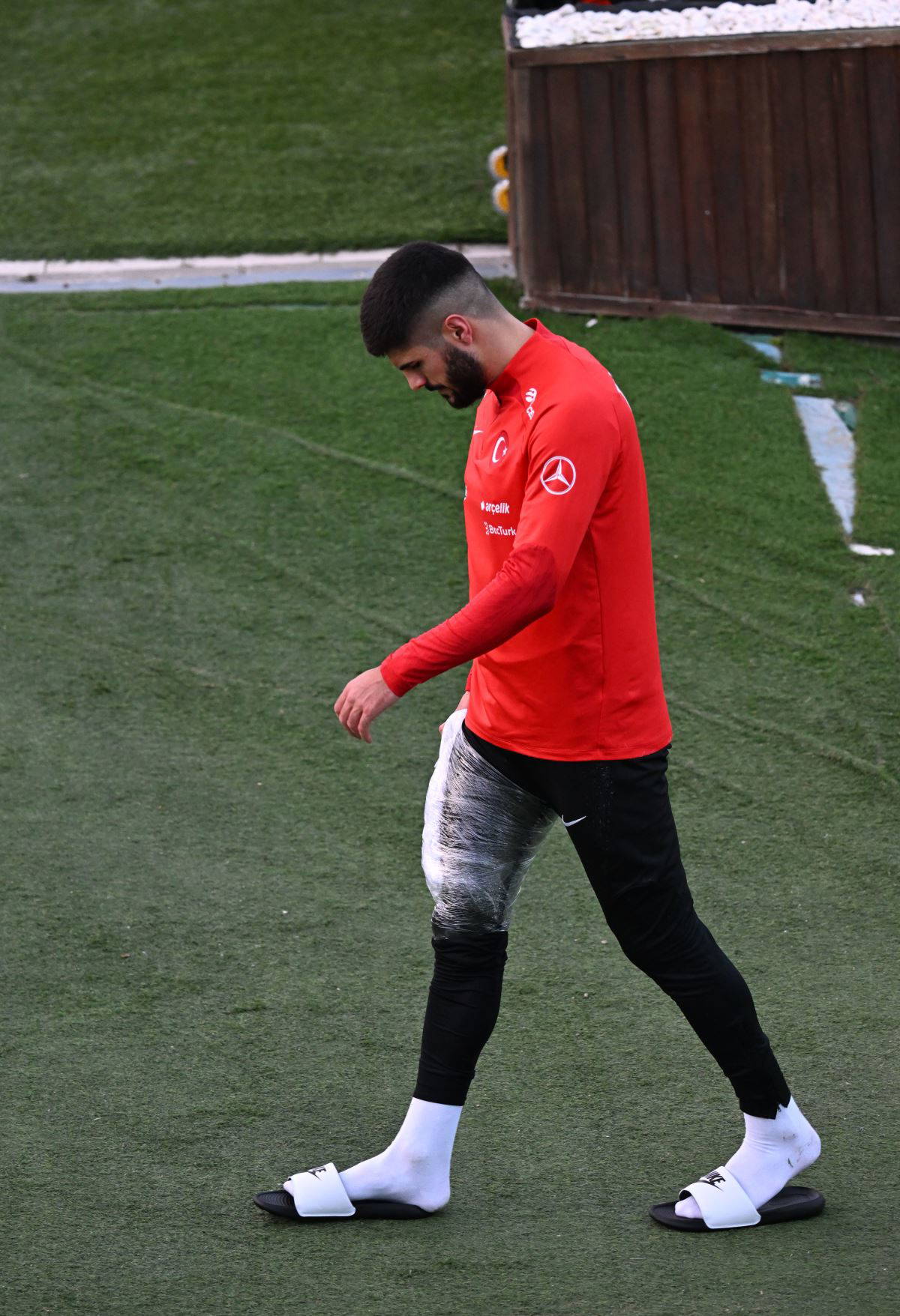 Çalışmanın son bölümünde sağ bacağından sakatlanan Eren Elmalı idmanı yarıda bıraktı.