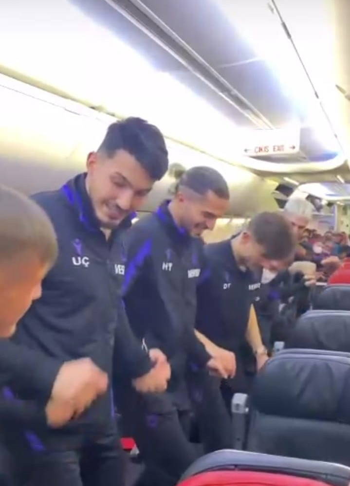 THY’ye ait özel uçakla İzmir’den Trabzon’a havalanan kafilede yer alan futbolcuların uçağın koridorunda horon ve kolbastı oynama görüntüleri Trabzonspor’un sosyal medya hesabı üzerinden yayınlanırken, görüntülerde Abdülkadir Ömür, Uğurcan Çakır, Dorukhan Toköz, Serkan Asan ile Berat Özdemir’in horon oynadığı görüldü. Futbolcuların neşeli halleri görüntülere yansırken, Abdülkadir Parmak’ın da kolbastı oynadığı gözlendi.