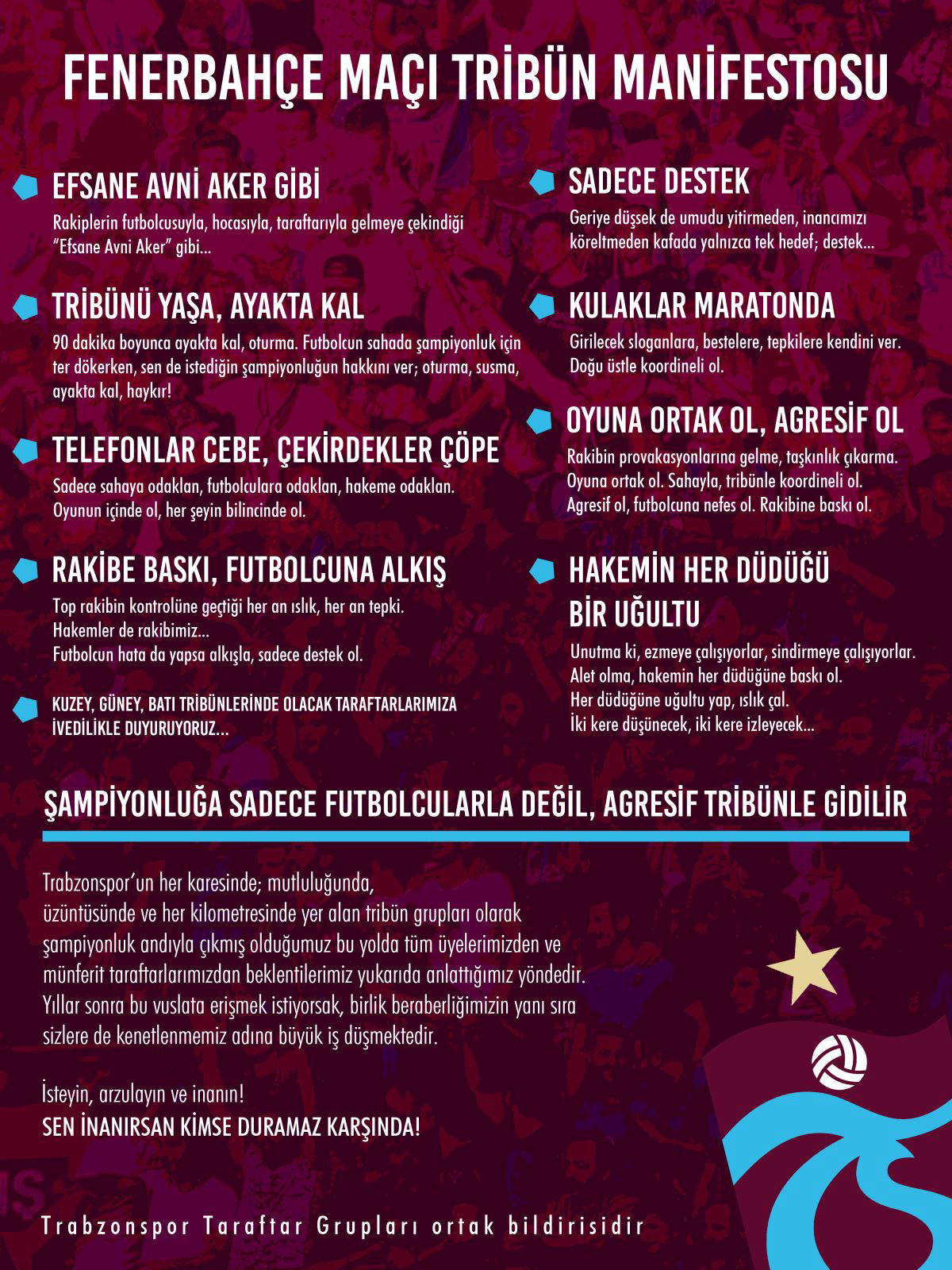 'Fenerbahçe Maçı Tribün Manifestosu' ismini verdikleri bildiri şu şekilde:
