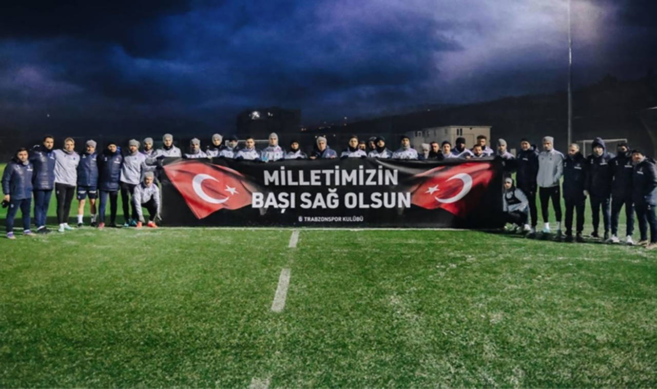 Bordo-mavili takım, moral bozukluğuyla başladıkları antrenman öncesinde depremde hayatını kaybedenler için saygı duruşunda bulunarak ‘Milletimizin başı sağ olsun’ yazılı pankart açtı. Ülkeyi yasa boğan depremin gölgesinde ilk idmanına çıkan oyuncular, Basel maçı hazırlıklarını bugün yapılacak idmanla sürdürecek.