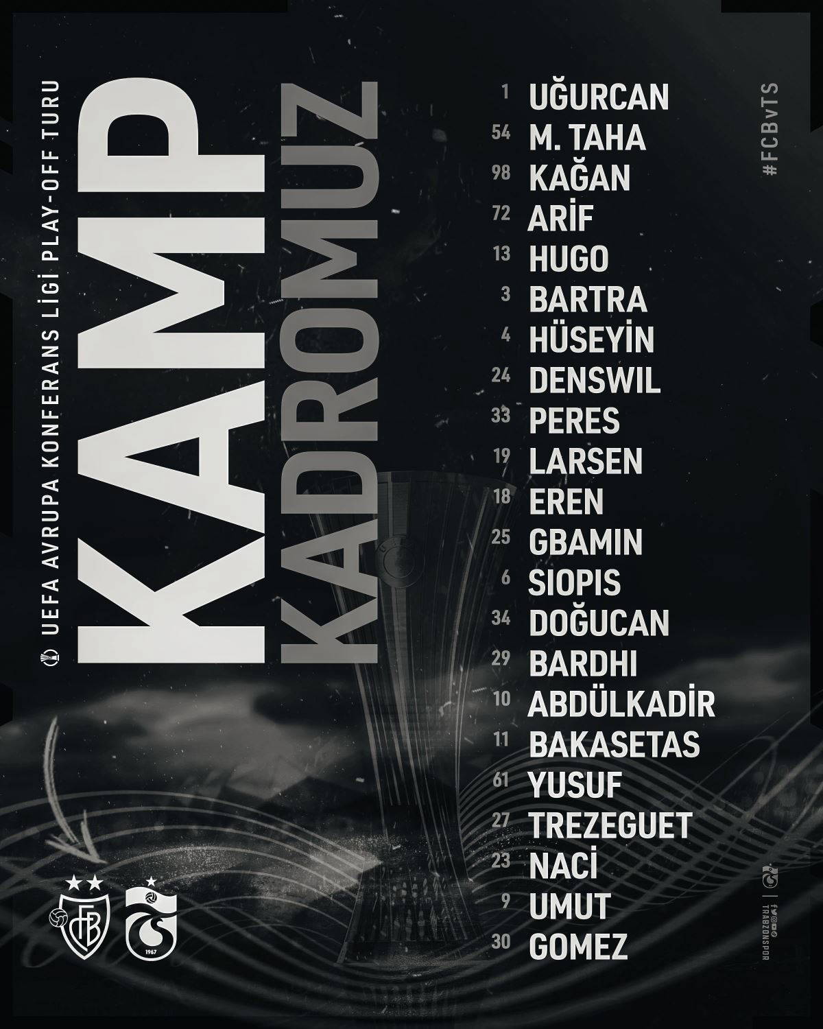 UEFA Konferans Ligi play-off rövanş maçında Basel'e konuk olacak Trabzonspor'da kamp kadrosu açıklandı.