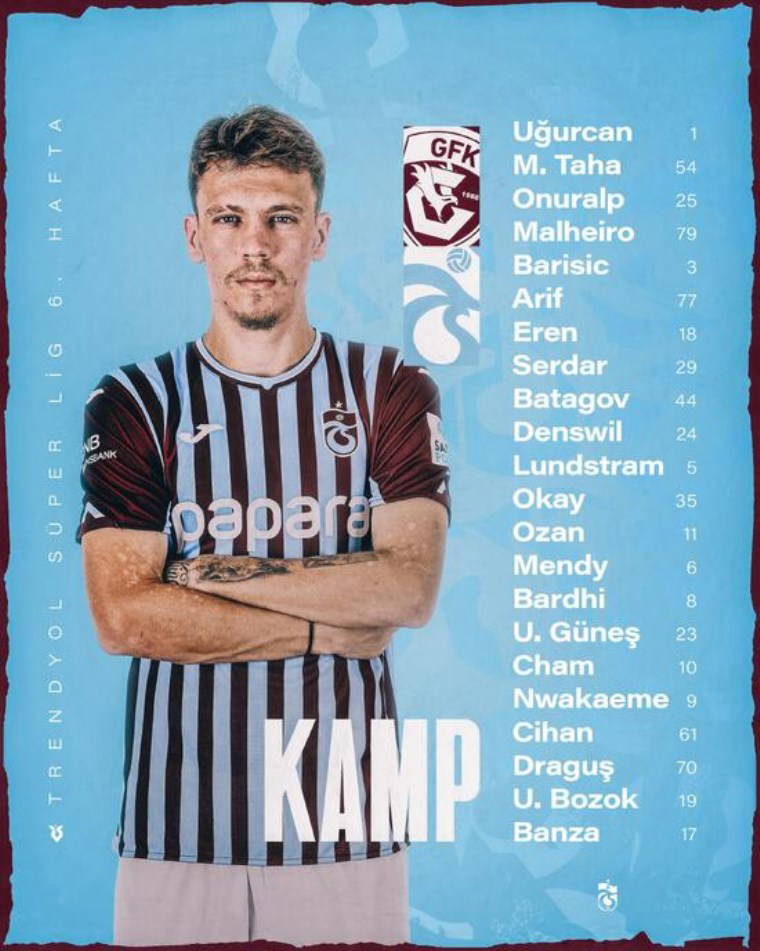 Trabzonspor'un kamp kadrosu şu şekilde: