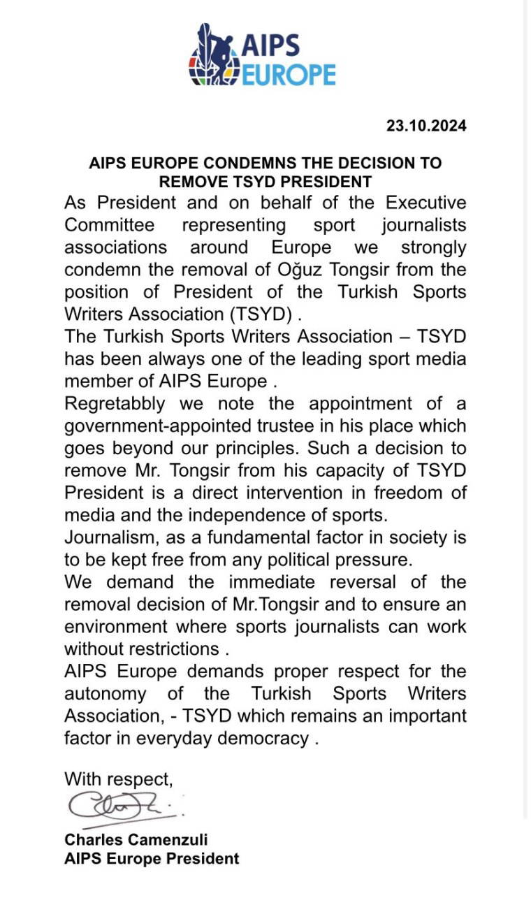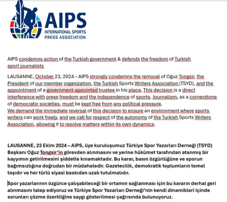 Türkiye Spor Yazarları Derneği'ne kayyum atanmasına bir tepki de dünya basınından geldi.