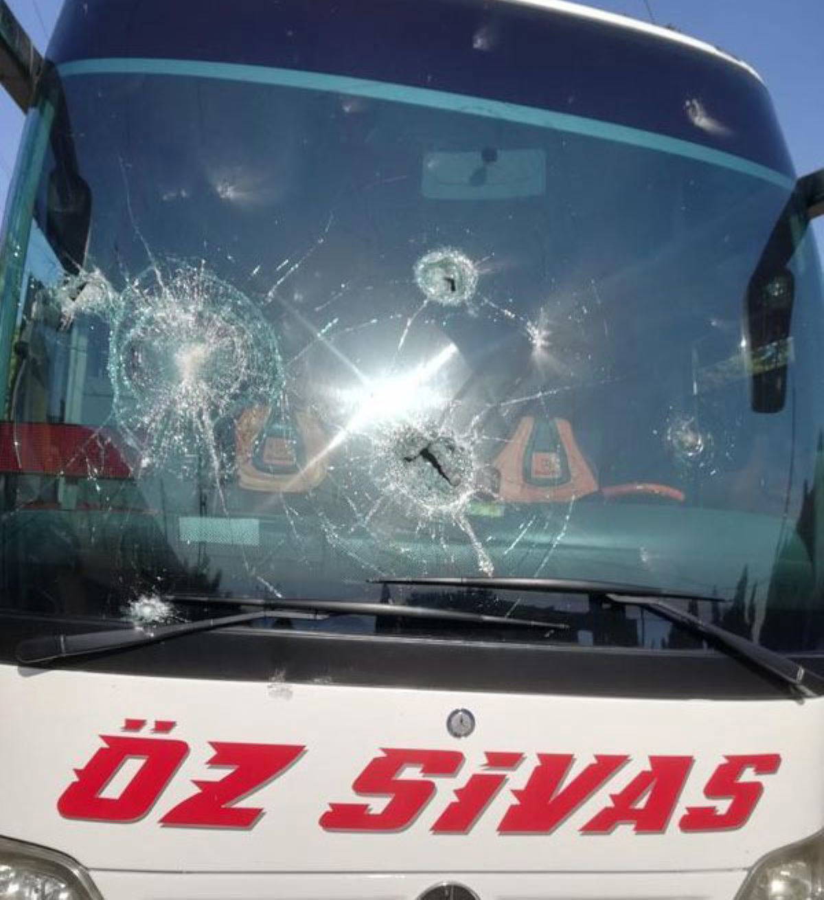 Sivas Belediyesi tarafından tahsis edilen otobüslerle İstanbul’a giden taraftarlar ile Kayserisporlu taraftarların Düzce ve Sakarya tesislerinde karşılaştıkları anlarda istenmeyen görüntüler yaşandı. Taraftar otobüslerinin camları atılan taşlarla kırıldı.