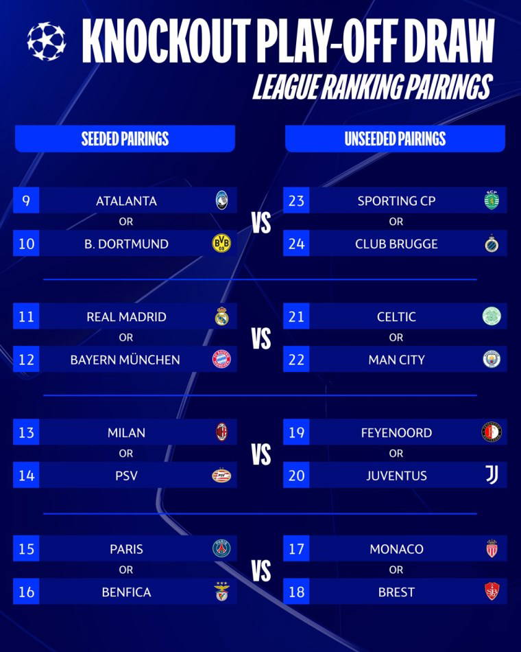 Bu sezon 36 takımlı lig formatına göre düzenlenen Devler Ligi'nde son 16 play-off turu kura çekimi, İsviçre'nin Nyon kentindeki UEFA Genel Merkezi'nde yapılacak.