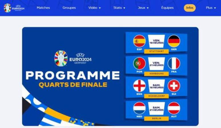 UEFA'nın Fransızca versiyonu olan sitesinde çeyrek final maçlarının yer aldığı bölümde Türkiye'ye yer verilmedi.