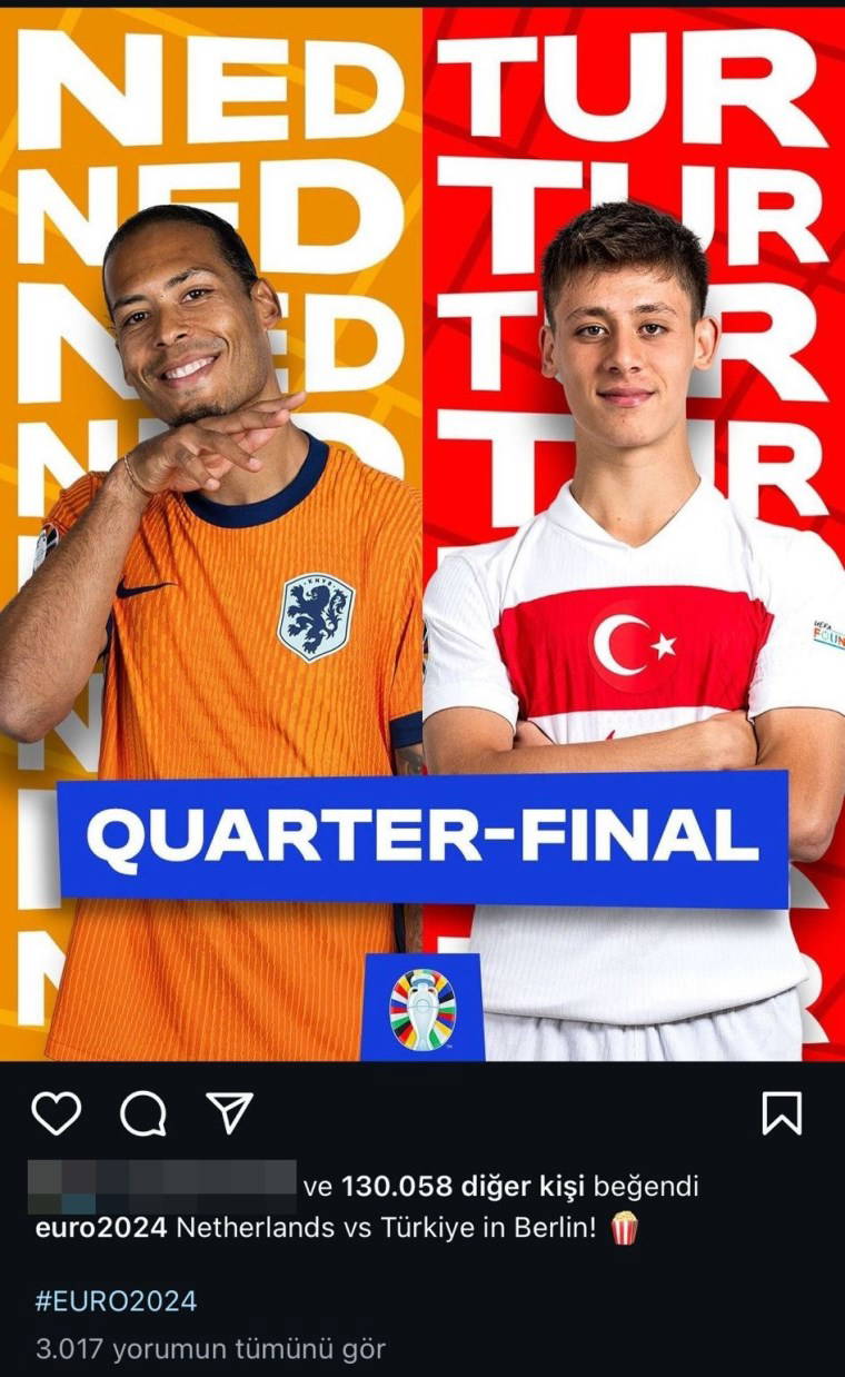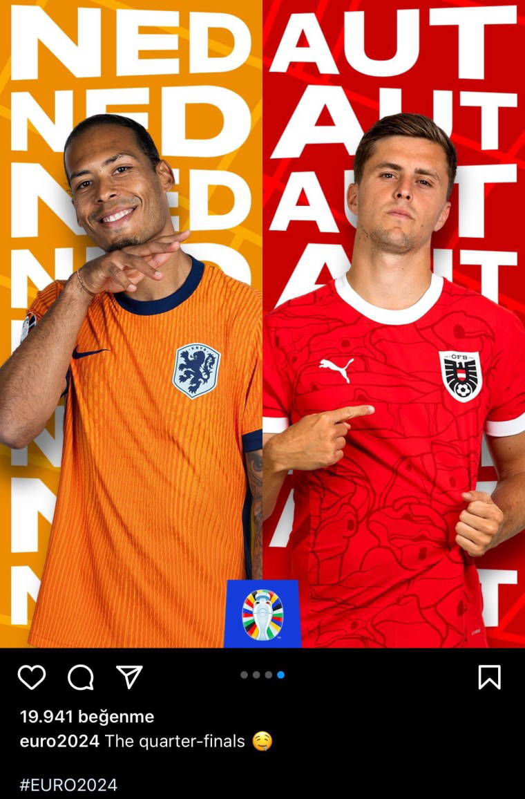 UEFA'nın resmi Instagram hesabında ise yine çeyrek finalist olarak Türkiye yerine Avusturya'nın yer aldığı görüldü.