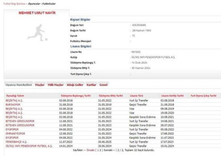 Fenerbahçe Kulübü'nden yapılan açıklamada, "Ara transfer döneminde yapılandırması sürdürülen Profesyonel Futbol A Takımımızda, oyuncularımızdan Umut Nayir'in kiralık transferi konusunda Pendikspor ile sezon sonuna kadar anlaşmaya varılmıştır. Futbolcumuza ligin geri kalan bölümünde başarılar dileriz" denildi.