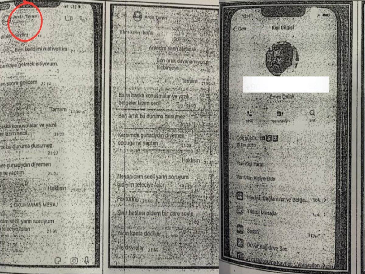 Son olarak 20 bin dolar parasının kaldığını söyleyen Turan, “Çoluğumuzun çocuğumuzun rızkını aldın ya. Benim şimdi 20 bin dolarım kaldı. Borçlarımı ben sana saydım. Tüm borçlarımı biliyorsun. Sende kredim var” diyor. Turan, Erzan ile olan bir WhatsApp yazışmasında ise bu kişiye, “Bana başka konuşmalar ve yazılı belgeler lazım Seçil” diyor. Çocuğunun yüzüne dahi bakamadığını söyleyen Turan, “Yarın ne yapacağım Seçil. Gideyim tefeciye filan faktoring…” ifadelerini kullanıyor.