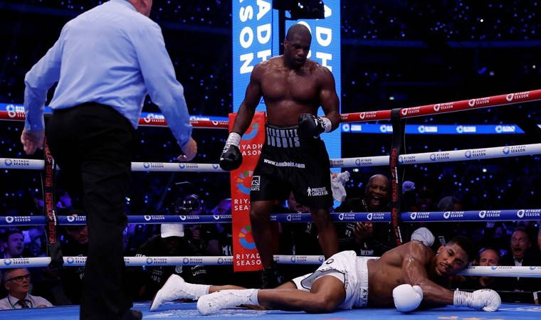 Çenesine gelen sağ kroşeyle yere serilen eski IBF, WBA ve IBO şampiyonu Anthony Joshua bu kez ayağa kalkamadı ve maçı Daniel Dubois nakavtla kazandı.