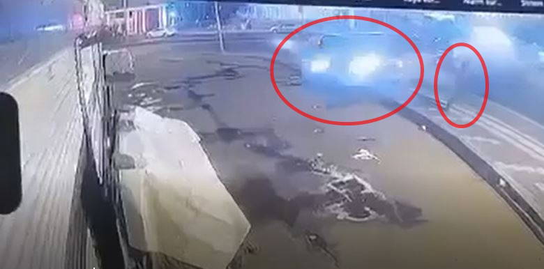 Her iki aracın kendilerine doğru geldiğini gören yayalardan 2'si, kaçmaya fırsat bulamadan araçların çarpmasıyla savruluyor. 1 yaya ise son anda kaçmayı başarıyor.