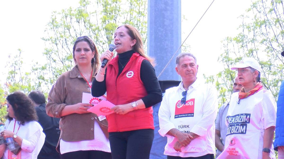 Ardından DİSK Başkanı Arzu Çerkezoğlu, "Hayatta kalmak için, bu düzeni değiştirmek için hep birlikte mücadele veriyoruz. Bu meydanda zamları hayır diyenler var, açlık sınırının altına gerileyen asgari ücretin artırılması için mücadele verenler var. Bu meydanda her türlü eşitsiziliğe karşı eşitlik talebiyle mücadele eden, artan şiddete rağmen bir gece yarısı çıkarılan kararnameyle çıkılan İstanbul Sözleşmesi’ne sahip çıkan kadınlar var" diyerek alandakilere seslendi.