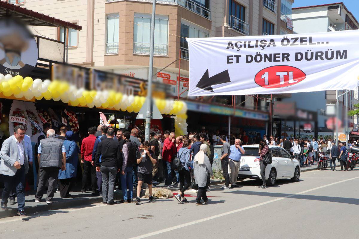 Samsun'un Atakum ilçesinde faaliyete geçen bir restoran açılışa özel 20 TL değerindeki et dönerin fiyatını 1 TL yaptı. Kampanyayı duyan yurttaşlar ise açılış saatinden dakikalar önce restoran önünde yerini aldı.