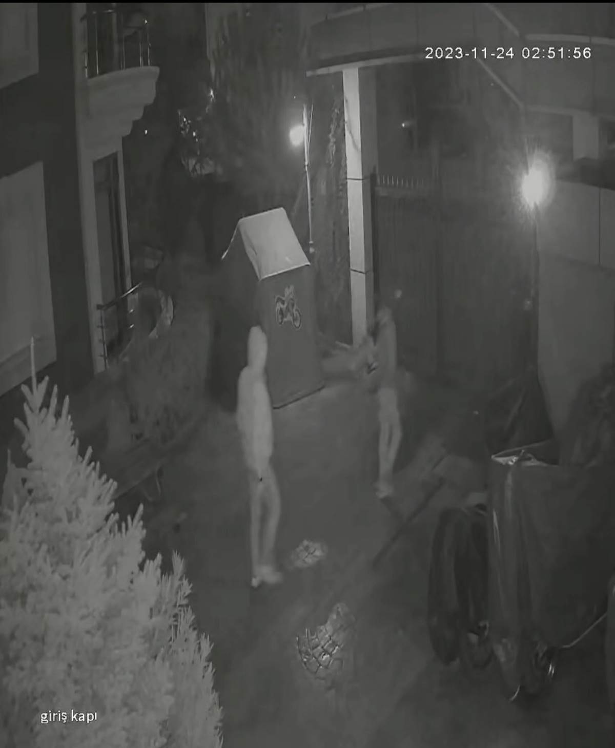 Bina bahçe kapısını geçen ardından “1234” gibi basit bir şifreli apartman kapısını açan 2 hırsız, sonrasında da bodrum katına indi. Hırsızlar burada yer alan depoya da 2 kapıyı geçerek ulaştı.