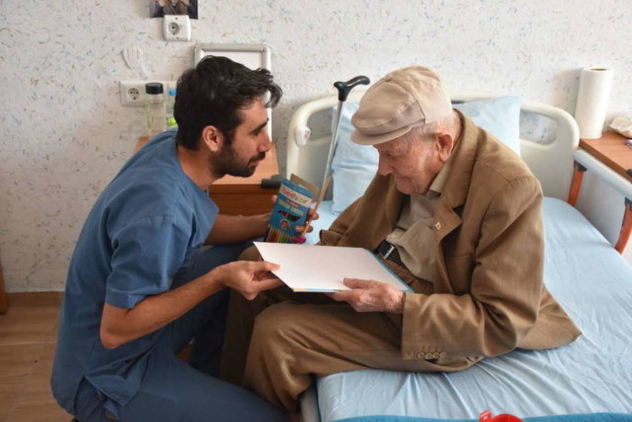"Mutluyuz açıkçası ve kendilerinin böyle iyilik halleri yükseldikçe bu, bizim için çok büyük bir nişandır. Tekerlekli sandalyeyle gelip de personelimizin büyük emekleriyle yürümeye başlaması bizi çok mutlu ediyor. Hikayeleriyle mutlu olmaya çalışıyoruz. Mutlu bir şekilde biz de onlarla burada aslında bir ömür geçiriyoruz. İlaç kullanmaz, sabah kahvaltısını yapar. Öğlen ve akşam gelir yemeğini yer. Çayını, kahvesini içer. Fazla yemek yemeyi de sevmez aslında. Her zaman mutlu olmayı, mutluluğun aslında ömre ömür kattığını söyler."