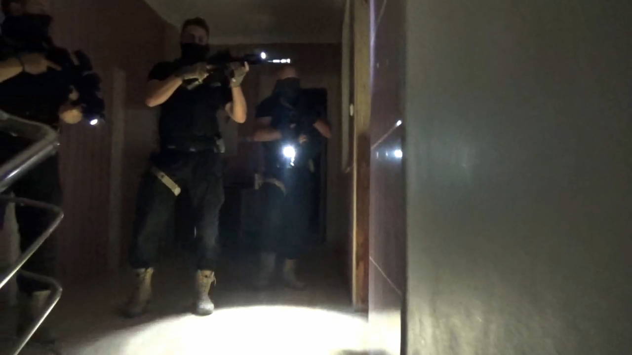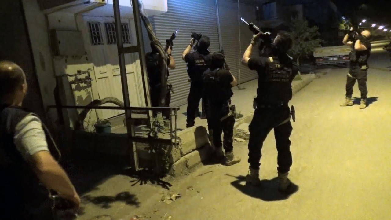 TEM ekipleri, ısıya duyarlı dron ile bölgede tarama yapıp, sokağı abluka altına aldı. Operasyon timi, damda güvenlik önlemi alınırken, demir kapı ekipler tarafından koçbaşıyla kırılarak eve girildi. Polise direnen Okumuş, gözaltına alınırken, operasyon anları da kameraya yansıdı.