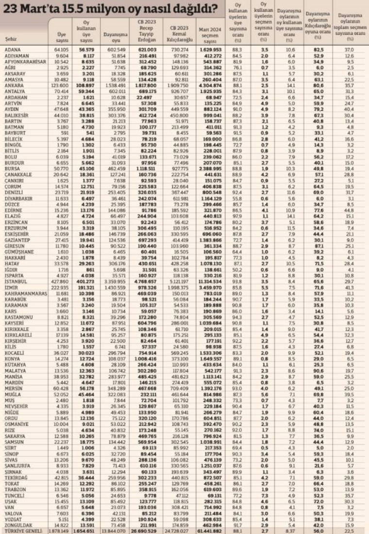 Oksijen Gazetesi yazarı Bekir Ağırdır da, İBB Başkanı İmamoğlu'na verilen oyları değerlendirdiği köşe yazısında oy tablosuna da yer verdi.