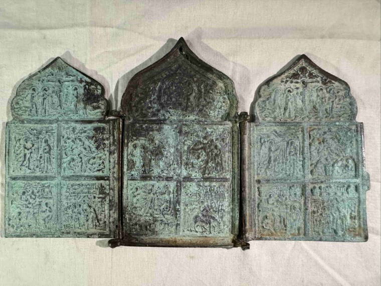 Otomobildeki aramada Bizans dönemine ait aptik triptikon/üçlü ikon Hz. İsa'nın hayatının sahnelendiği levha ve 1 matara ele geçirildi.