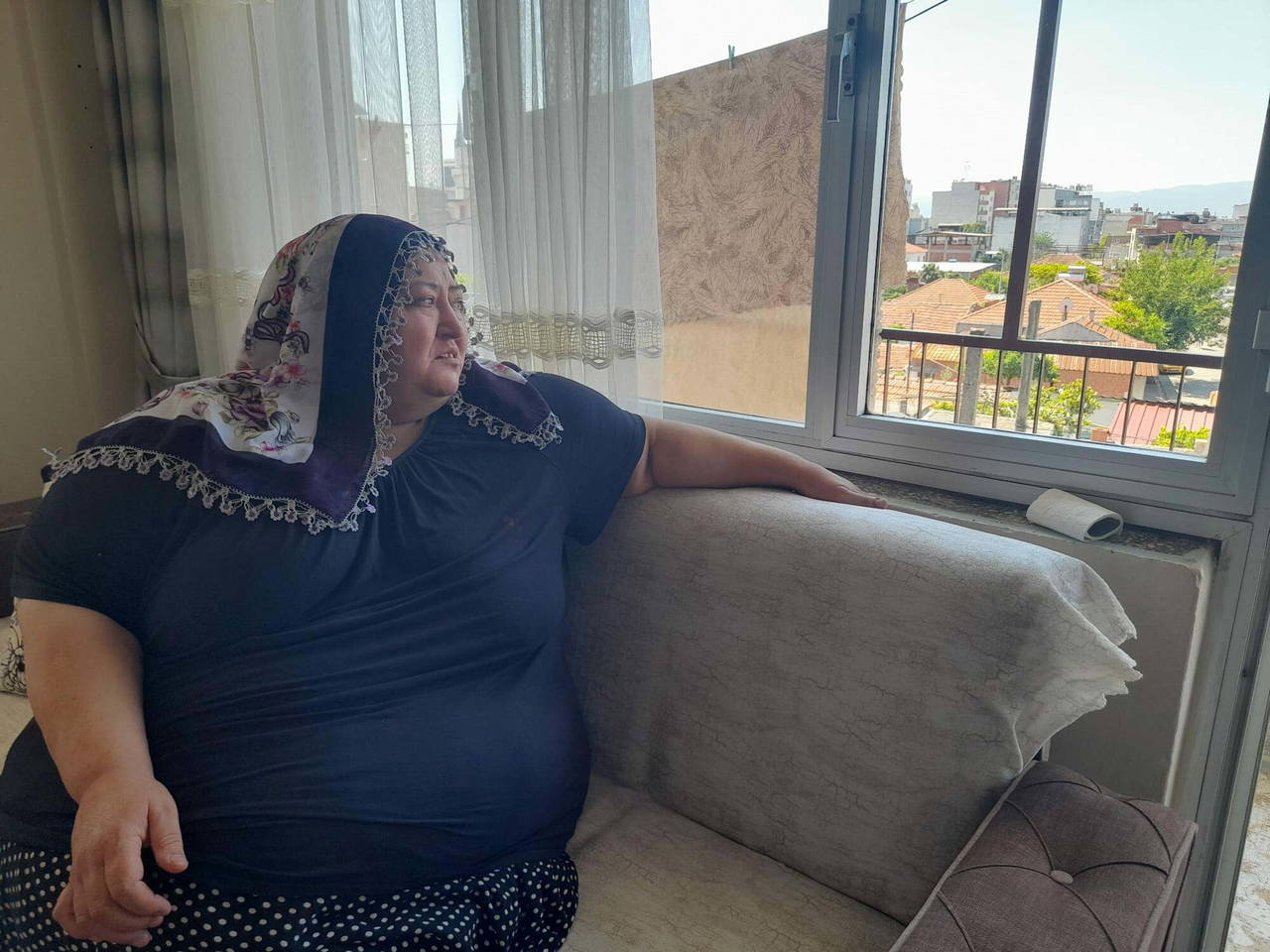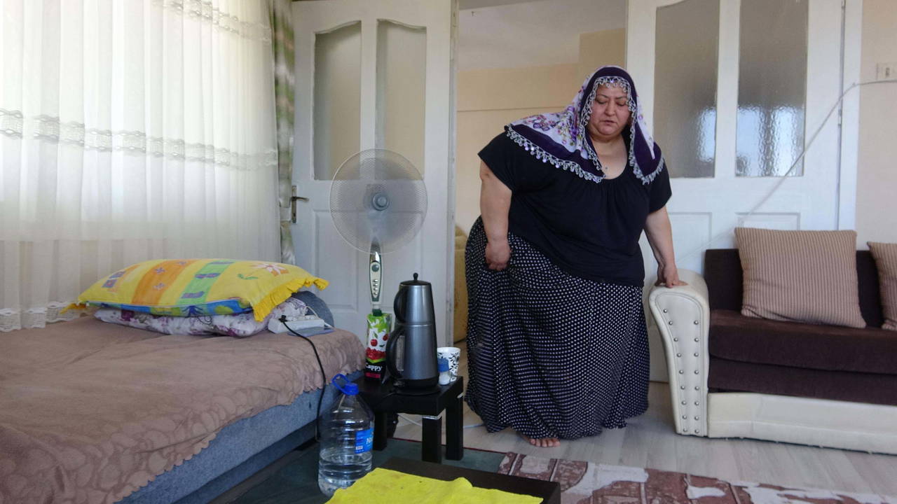 Yürümekte zorlanan ve 7 yıldır eve mahkum olan Aysel Dönmez, kilosunun yanı sıra diyabet, tansiyon ve kalp rahatsızlıkları bulunduğunu belirtip, çok zor bir yaşam sürdüğünü anlattı.