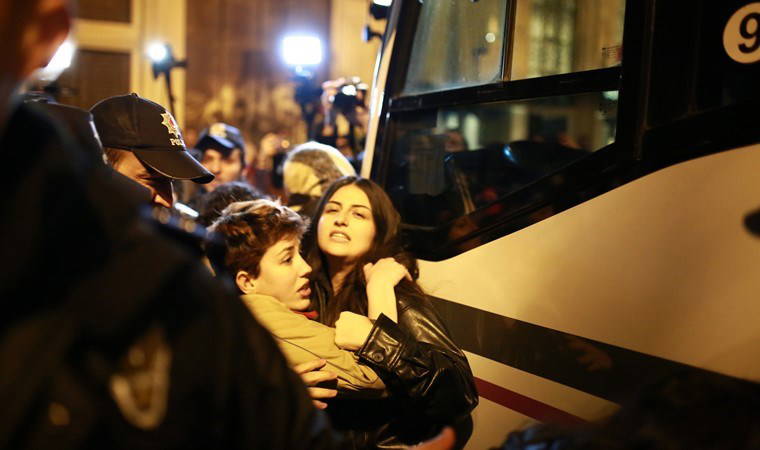 Burada toplanan yurttaşlar "Geceleri de sokakları da terketmiyoruz" sloganlarını atmasının ardından polis ablukaya aldı ve basın mensuplarını alandan çıkarttı.