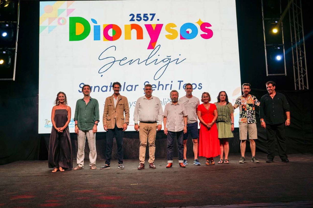 Şenliğe katılan sanatçılar, şenliğe özel muhteşem bir sahne şovuna imza attı. Oyuncular Sendikası’ndan Erkan Can sanatın birleştirici gücü ve bereketinin binlerce yıldır toplumlara değer kattığını belirterek, “Dionysos Şenliği’nin uluslararası bir festivale dönüşmesi için Oyuncular Sendikası olarak üzerimize düşen her türlü desteği vermeye hazırız” dedi. Oyuncu Bekir Aksoy ise Anadolu'nun binlerce yıllık köklü kültürünün geleneksel ve çağdaş unsurlarının çok özel sanatsal etkinliklerle taçlanacağı şenliğin, sanat adına çok değerli olduğunu ifade ederek, şenlikte bulunmaktan mutluluk ve gurur duyduğunu belirtti. “Sanatçılar Teos’ta” oyununa sunumu ile değer katan sevilen oyuncu Taner Rumeli de bu yıl ilki gerçekleştirilen şenliğe Oyuncular Sendikası olarak önümüzdeki yıl daha geniş katılım sağlayacaklarını vurguladı. Yine Oyuncu Sendikası’ndan Tuba Erdem de, sanatçılara verilen değer arttıkça toplumun da geliştiğini söyleyerek, Seferihisar Belediyesi’ne binlerce yıllık festivale yeniden hayat verdiği için sanatçılar adına teşekkür etti.