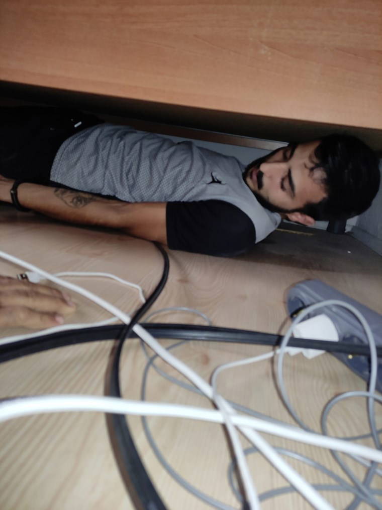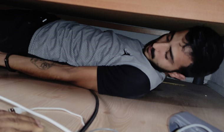 Ekipler, odadaki ranzanın alt kısmının önünde rulo halinde duran halıyı fark etti. Halı çekildiğinde ranzanın altına saklanan şüpheli bulundu. Şüphelinin yakalanma anı cep telefonu kamerasıyla kaydedildi.