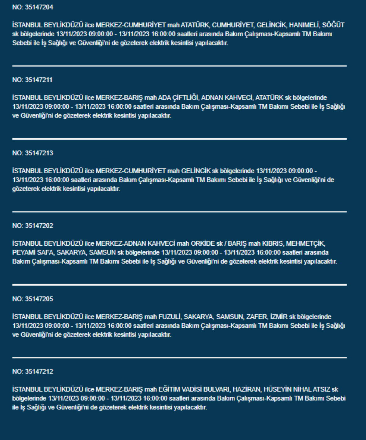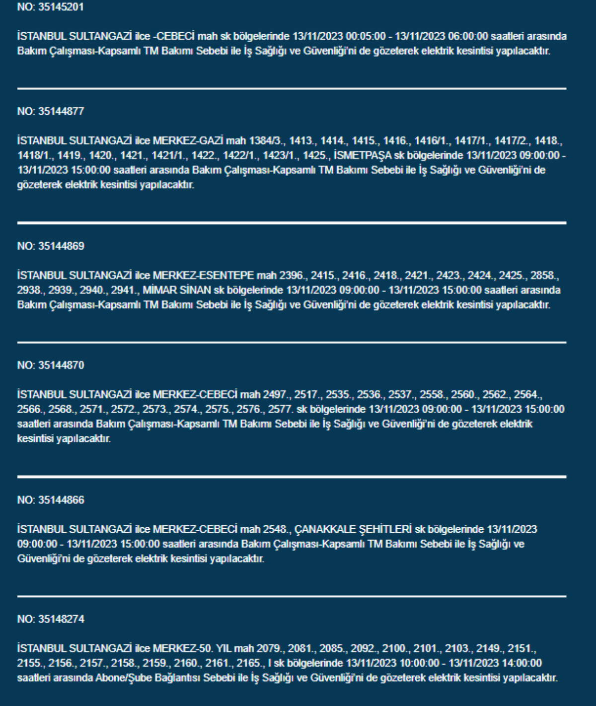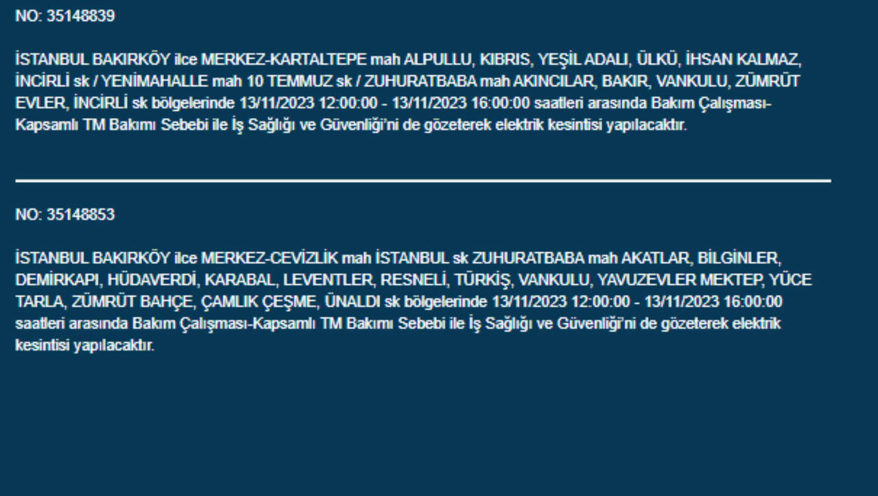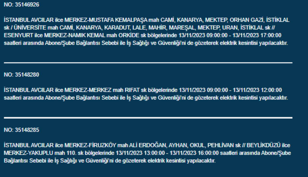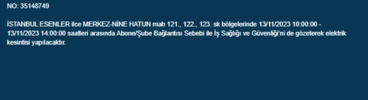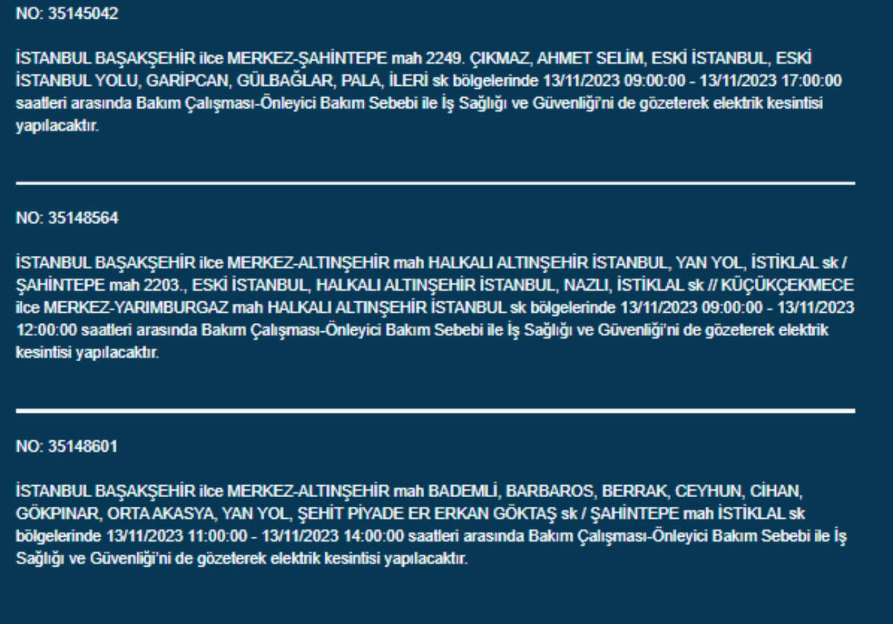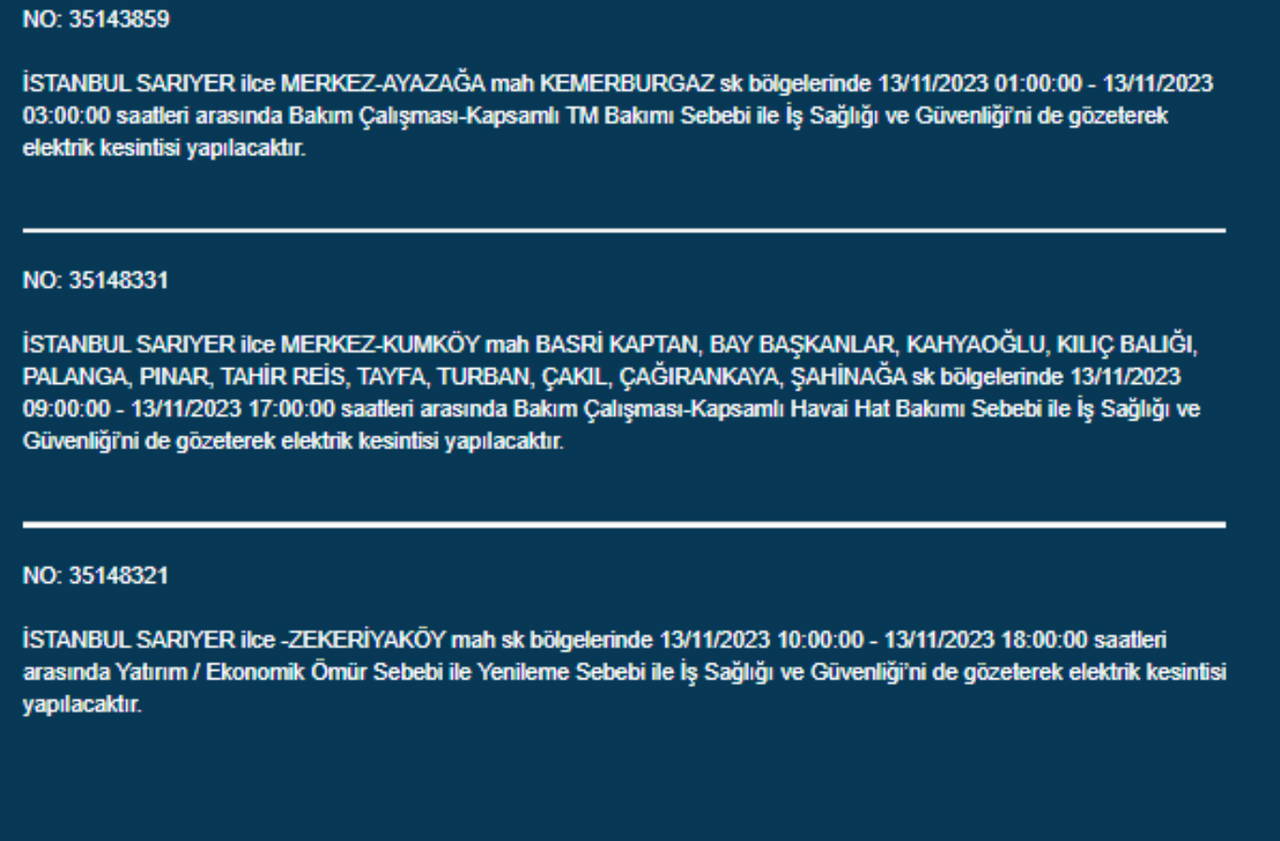 İstanbullulara elektrik sağlayan BEDAŞ ve AYEDAŞ, resmi sitesi üzerinden en az 35 ilçede anlık ve uzun süreli bakım çalışmalarından dolayı elektrik kesileceğini duyurdu. Peki, İstanbul'da bugün elektrik kesintisi yaşanacak ilçeler neler? 13 Kasım İstanbul'da elektrik ne zaman gelecek?
