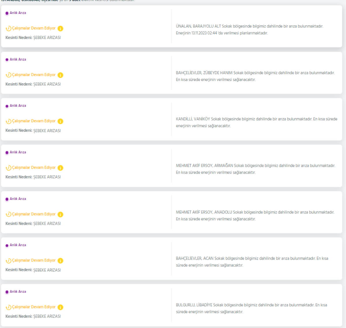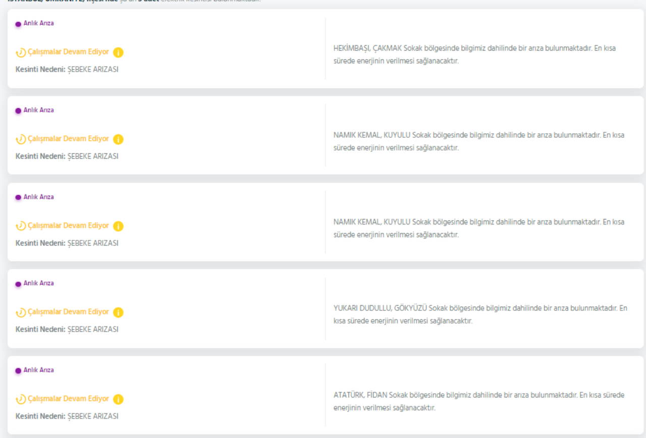 ANADOLU YAKASINDAKİ ELEKTRİK KESİNTİLERİ