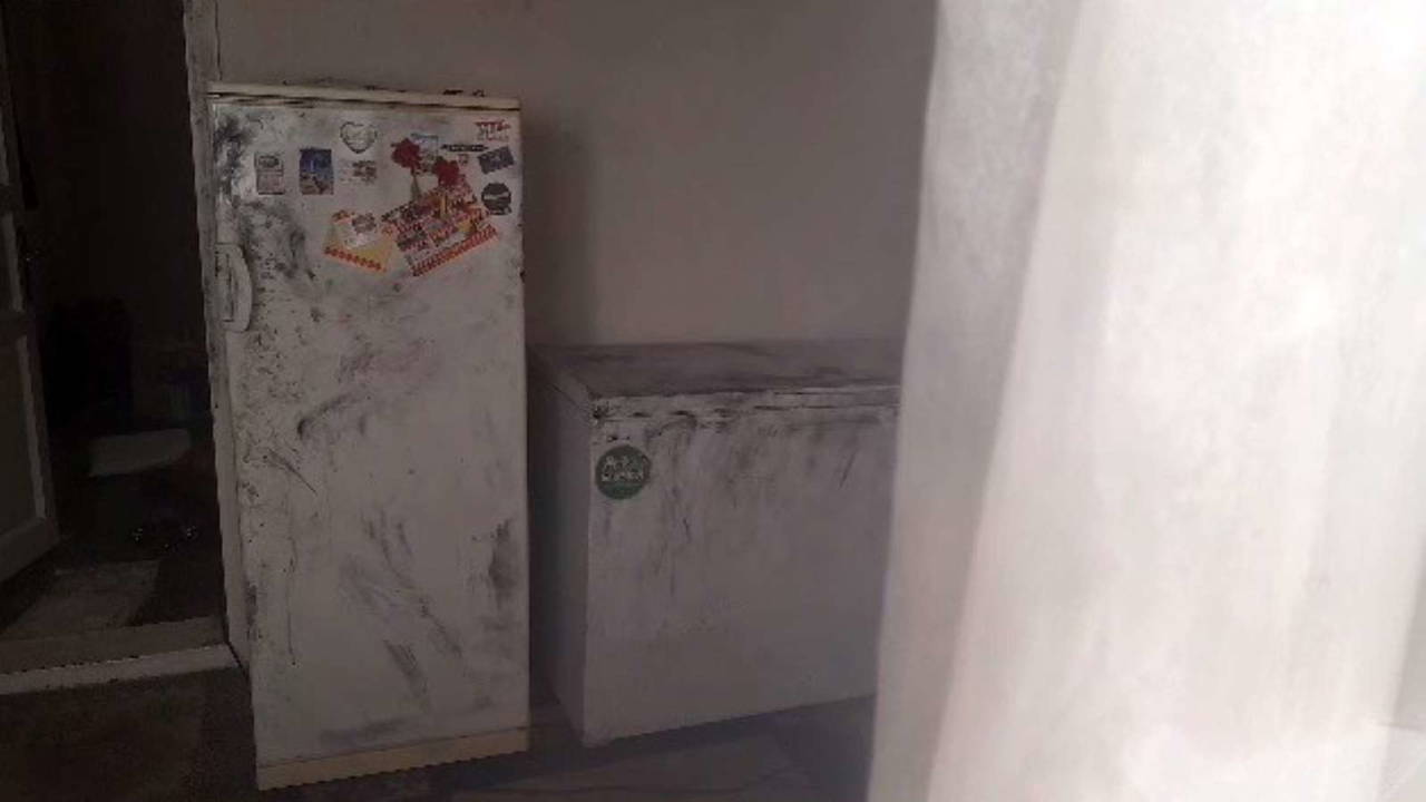 (Polis parmak izi çalışması yaptığı için buzdolabı ve derin dondurucunun beyaz renkleri siyaha bulanmıştır.)