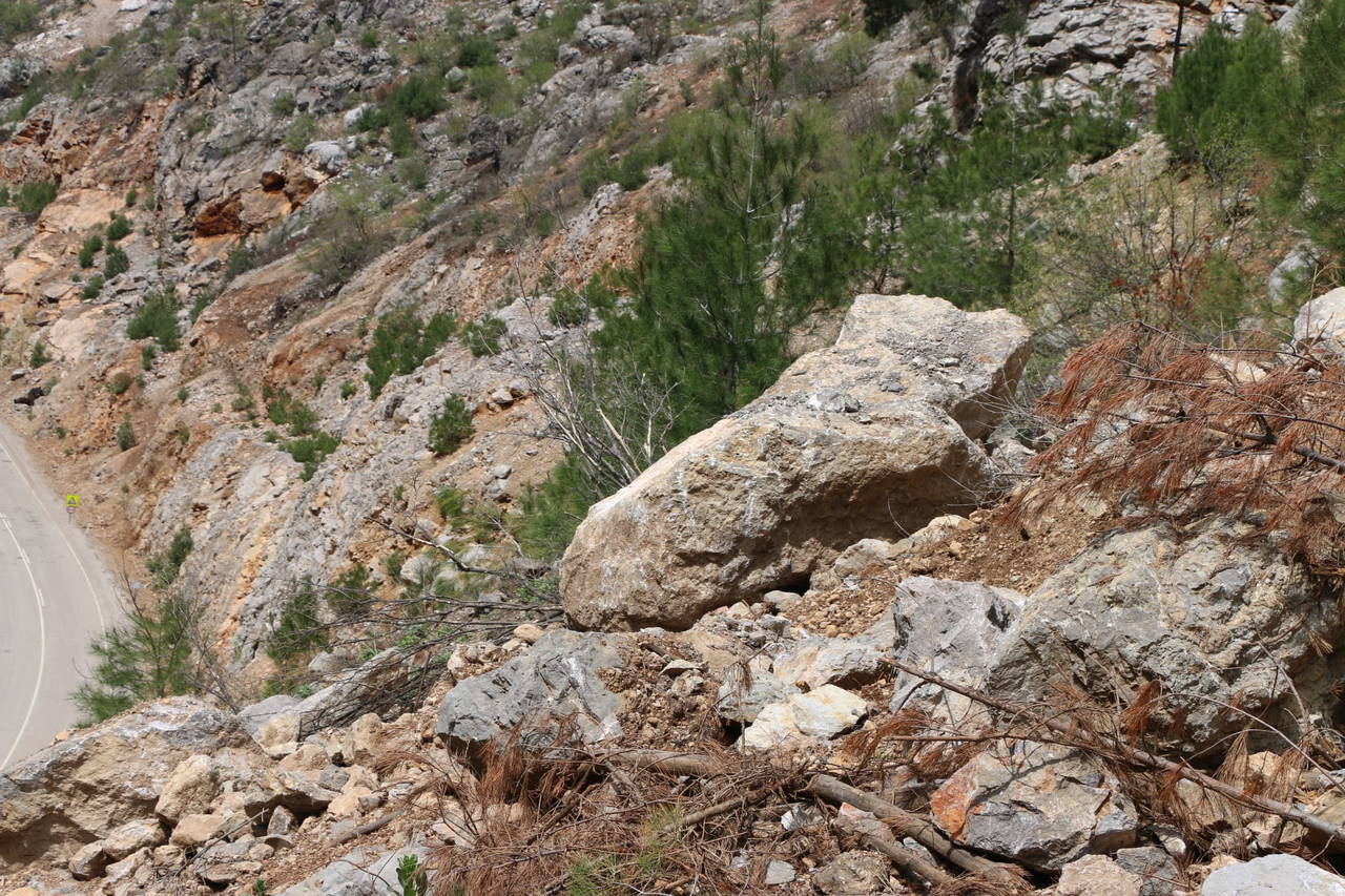Kazanın olduğu noktaya, halen kaya parçaları düşüyor. Sürücüler ise trafiğe açık yolda tedbir alınmasını istedi.