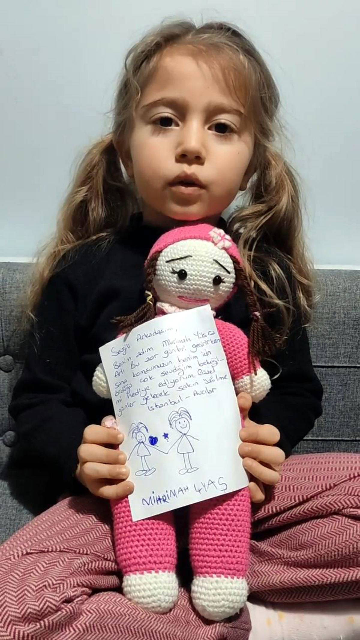Ambarlı Mahallesi'nde oturan Merve Karaca Arlı'nın iki küçük kızından Mihrimah Yüsra Arlı, ekrandaki afet ile ilgili haberlerden etkilenince annesine oyuncağını göndermek istediğini söyledi.