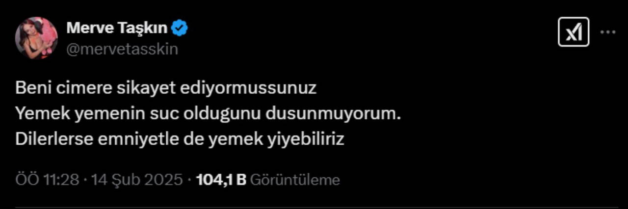Merve Taşkın'ın paylaşımı şu şekilde: