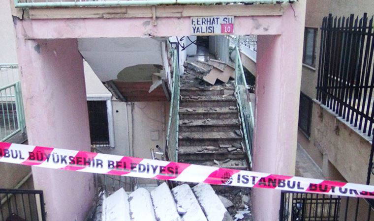 İstanbul'un Avcılar ilçesinde bulunan 50 yıllık 5 katlı binanın merdivenleri kendiliğinden çöktü.