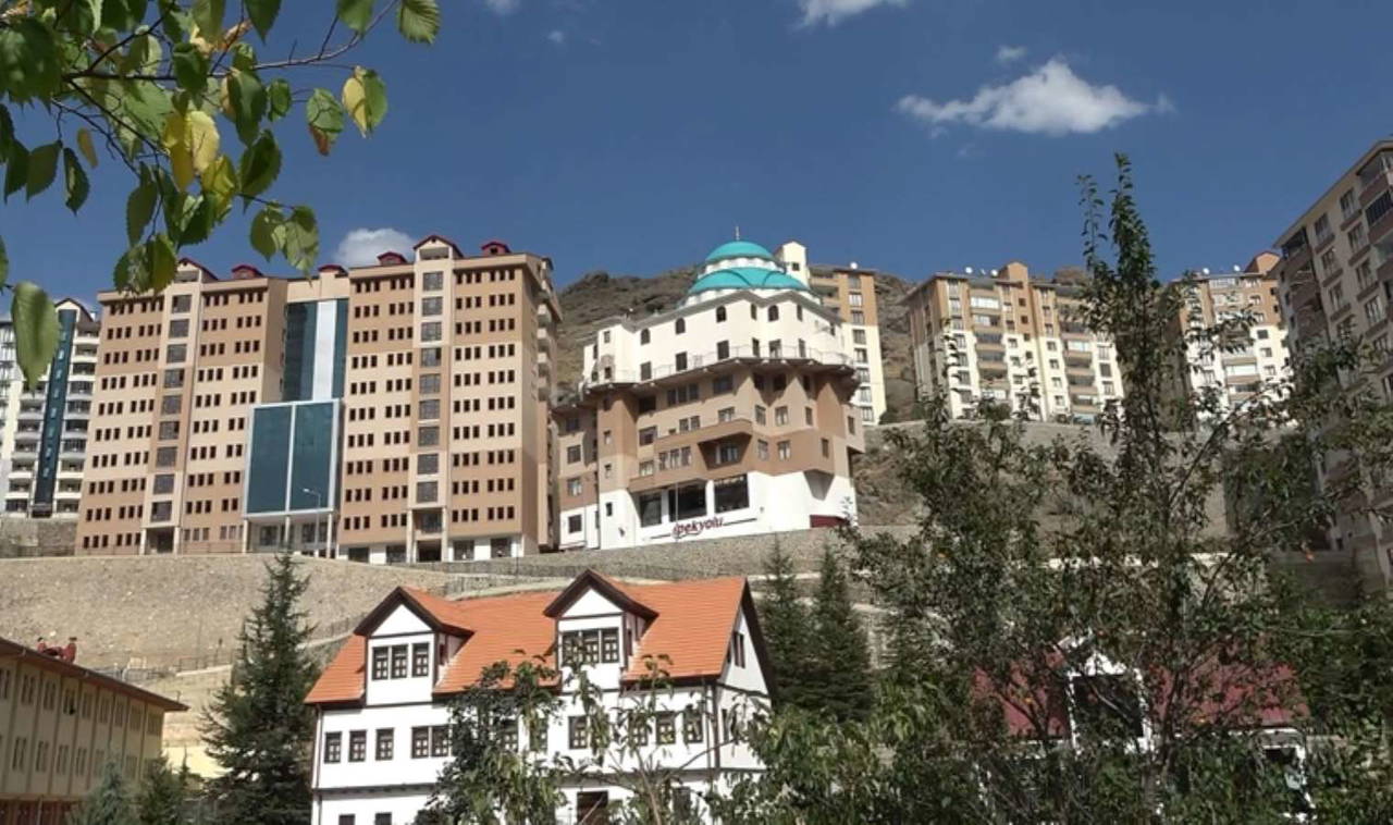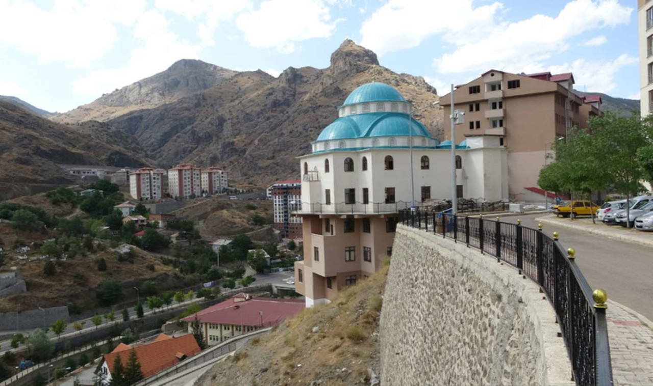 “Burası kayalık bir semtti. Burada kayaları kırarak konutlar yapıldı. Konutlar yapılırken bu arazi de ibadet alanı olarak belirlendi. Buraya hem bir cami hem de Kuran kursu ve yurt olarak yapalım diye yola çıktık. Tabi bildiğiniz gibi Gümüşhane’de arsa sorunu çok. Her taraf kayalıklarla dolu, arsa olmadığı için bu kayalıkları kırarak yaptık. Buradan 10 bin metreküp taş çıkardık. Burada alanımız kısıtlı olduğundan ve zeminde yüksek olduğundan dolayı burayı 5 kat yaptık ve camimizin girişini yukarıdaki yoldan verdik ama alttan göründüğü zaman 5 kat olarak görünüyor.
